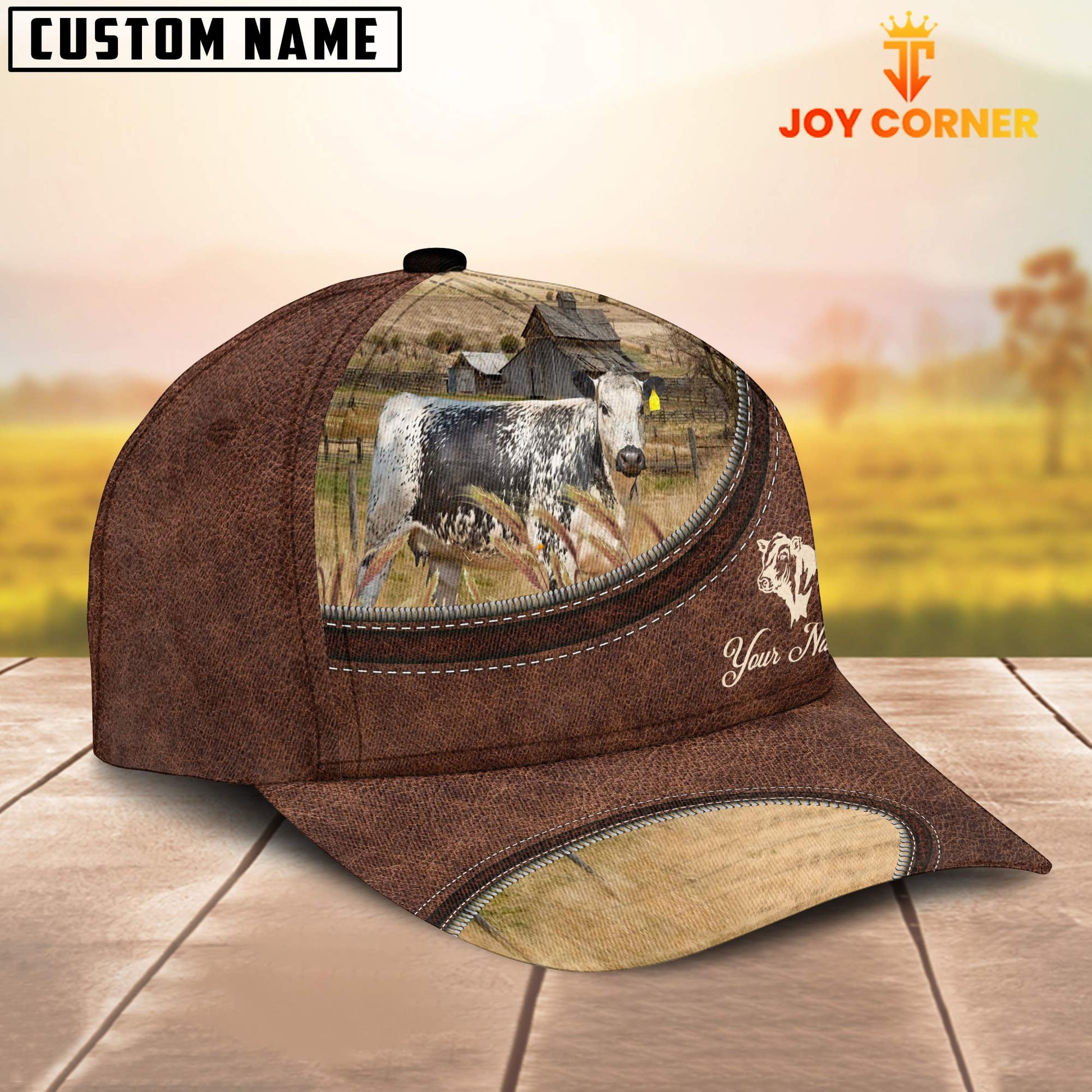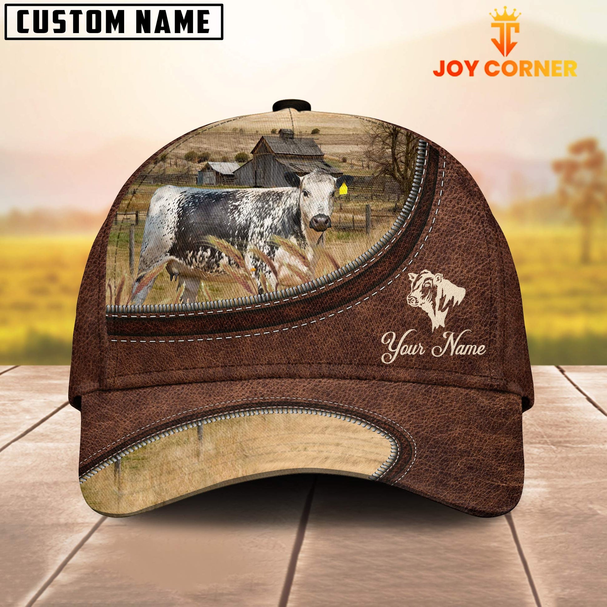 Uni Speckled Park On The Farm Customized Name Leather Pattern Cap