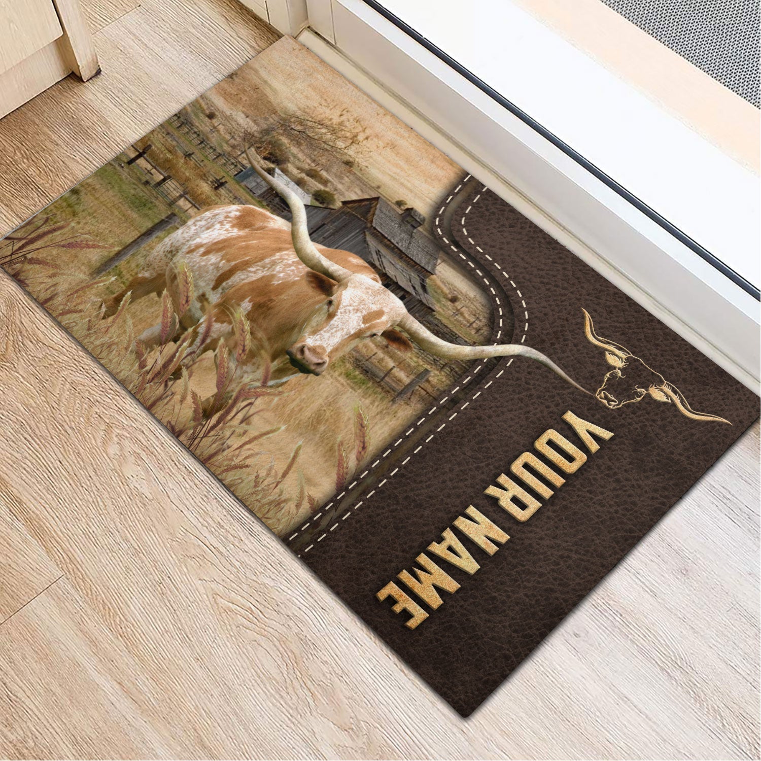 Uni Texas Longhorn Custom Name Leather Pattern Doormat