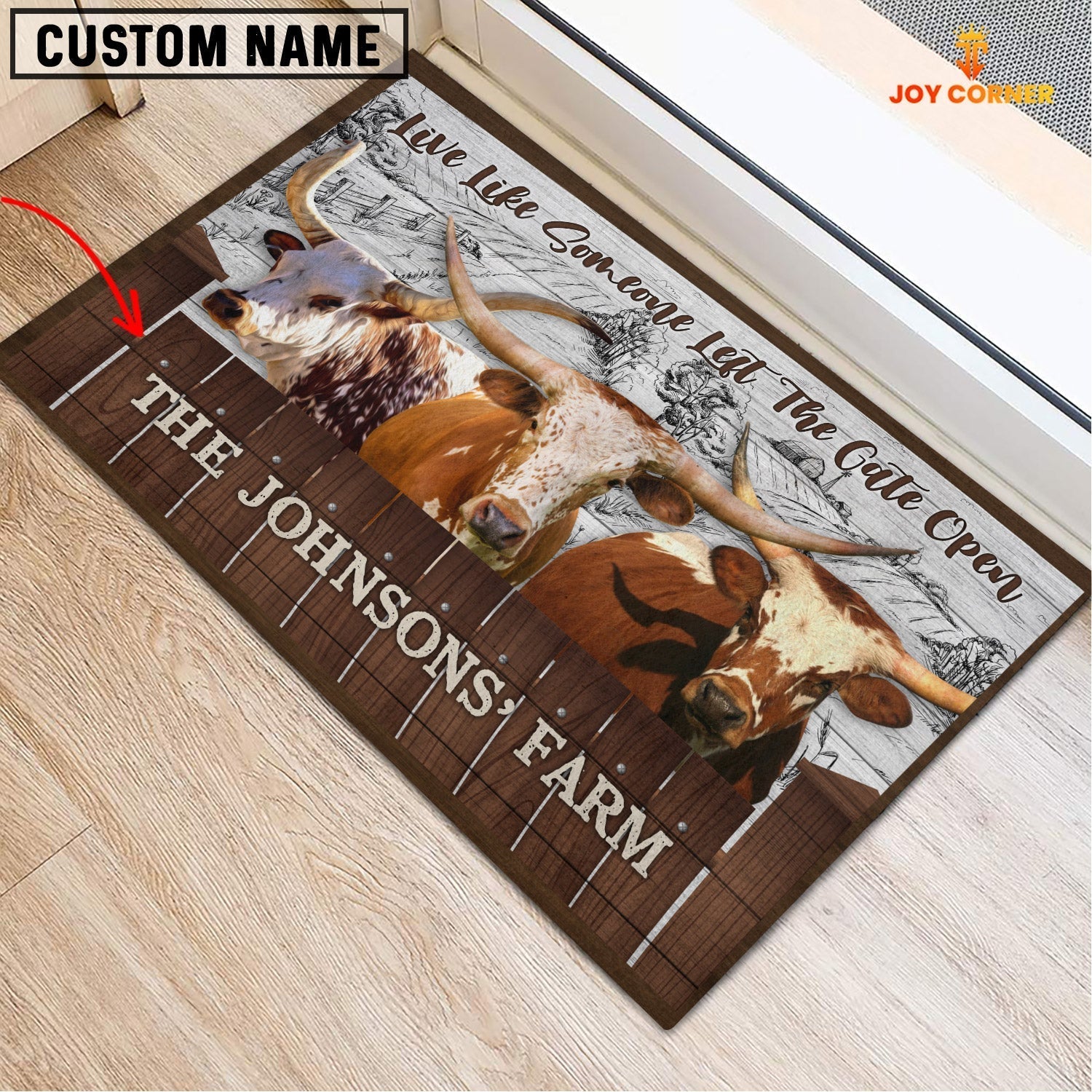 Uni Texas Longhorn Custom Name - Live Like Someone Left The Gate Open Doormat