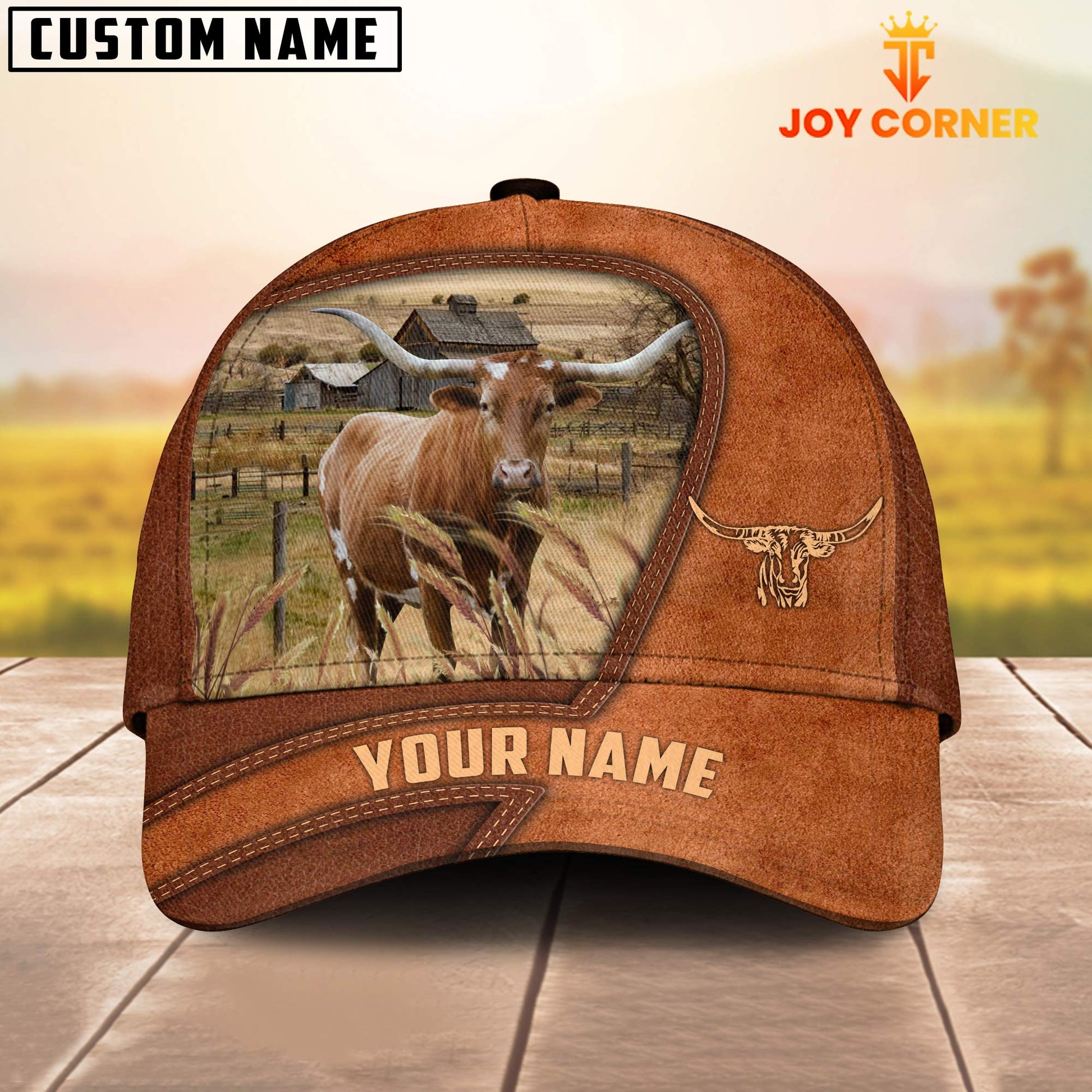 Uni Texas Longhorn Customized Name Brown Leather Pattern Cap