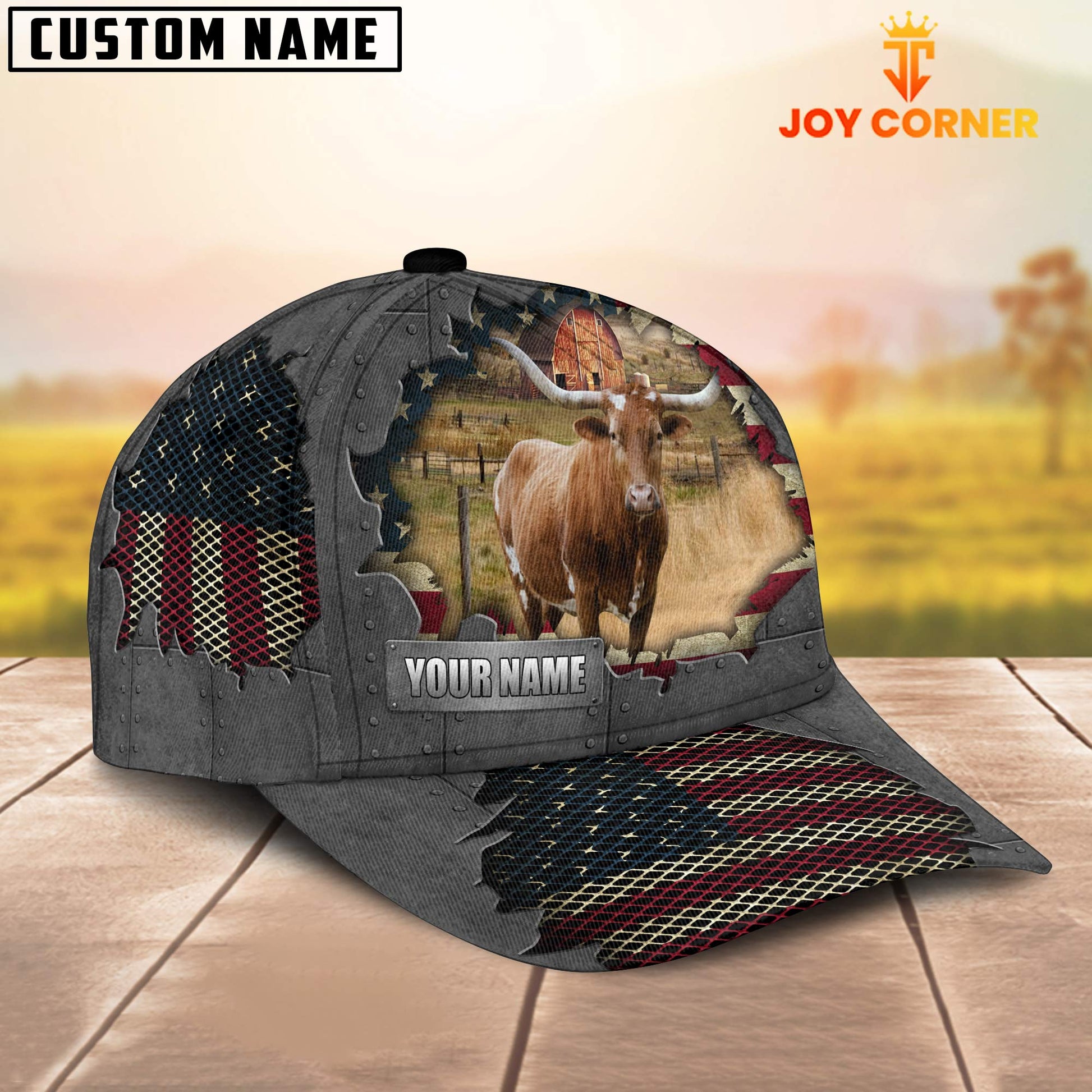 Uni Texas Longhorn Customized Name US Flag Net Cap