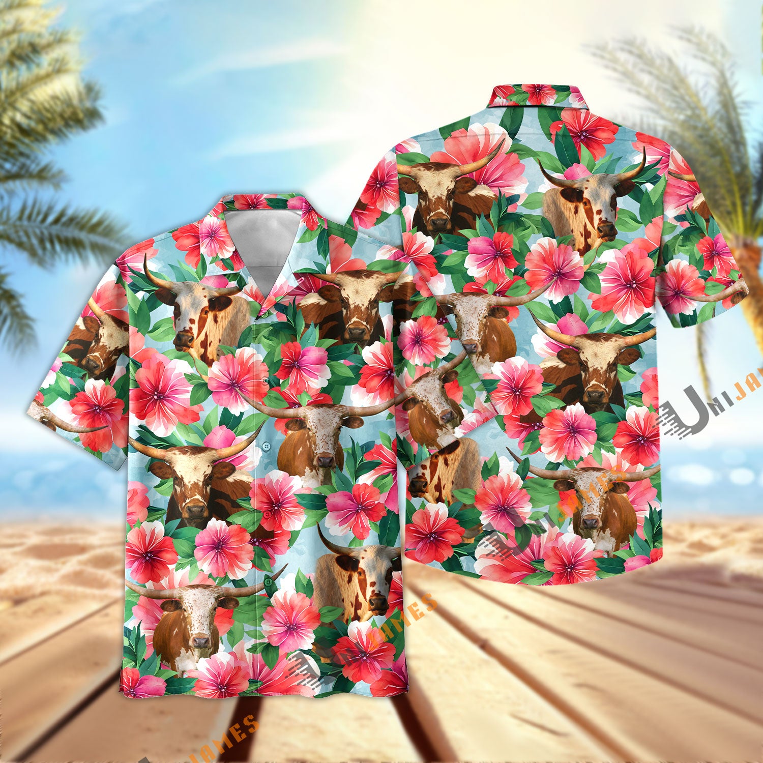 Uni Texas Longhorn Garish Floral Hawaiian Shirt