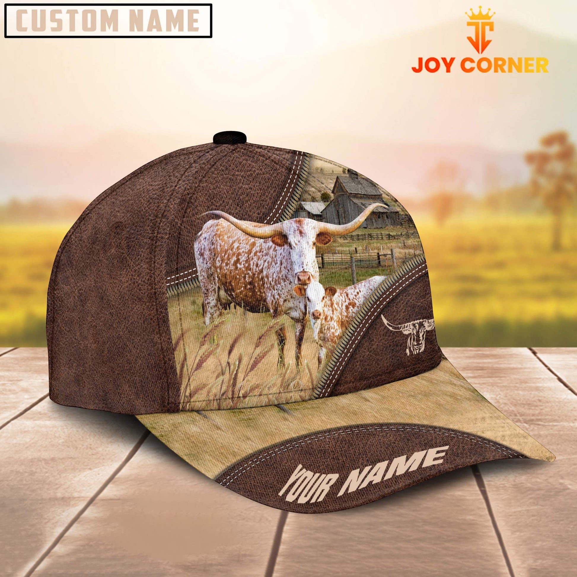 Uni Texas Longhorn On The Farm Customized Name 3D Brown Cap