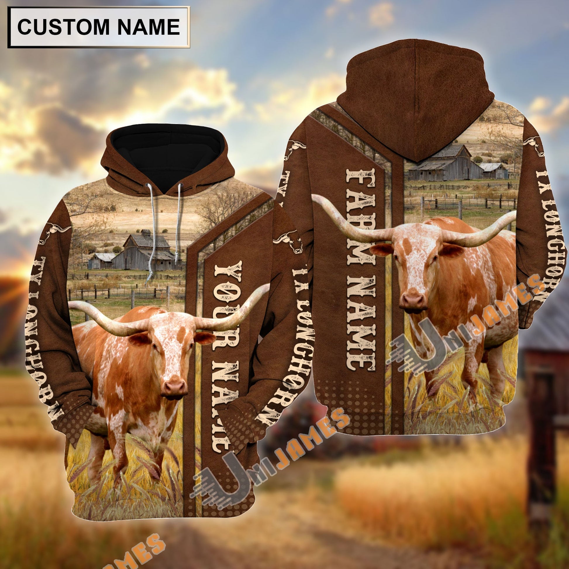 Uni Texas Longhorn Personalized Name, Farm Name 3D Hoodie