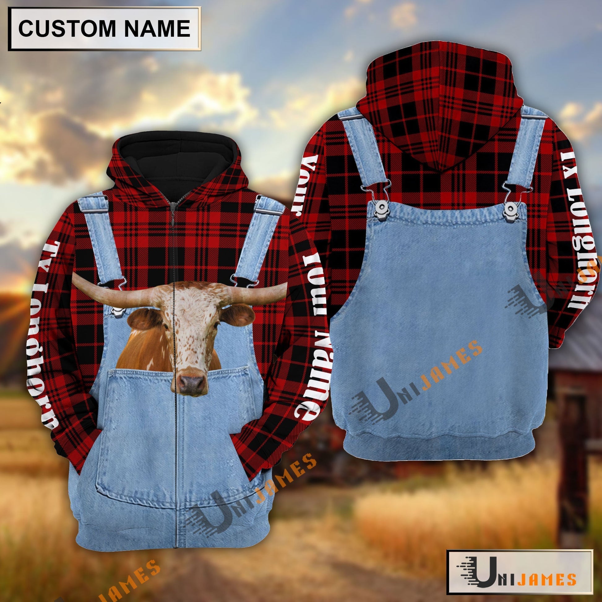 Uni Texas Longhorn Red Jeans Pattern Personalized Name 3D Hoodie