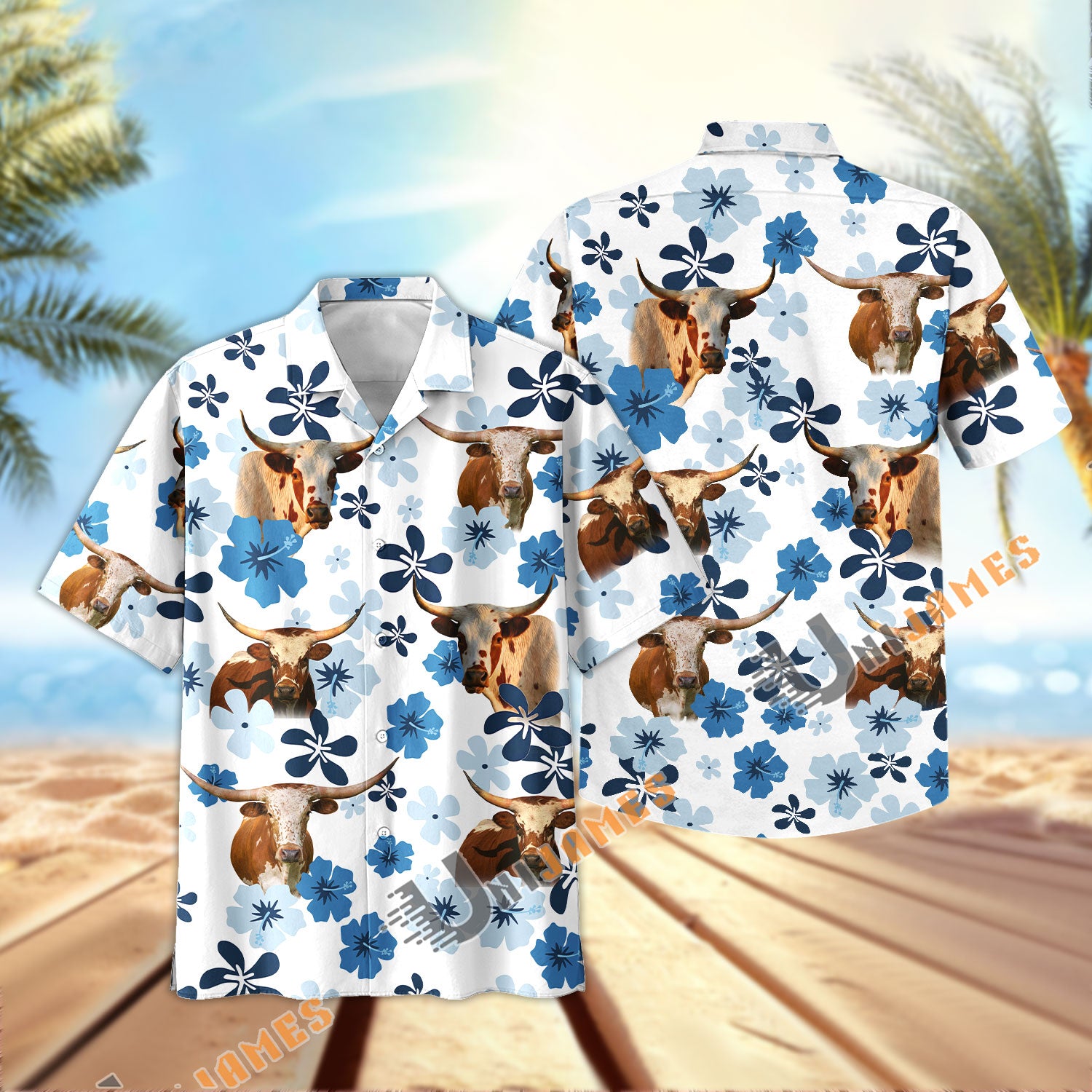 Uni Texas Longhorn Retro Blue Aloha Floral Hawaiian Shirt