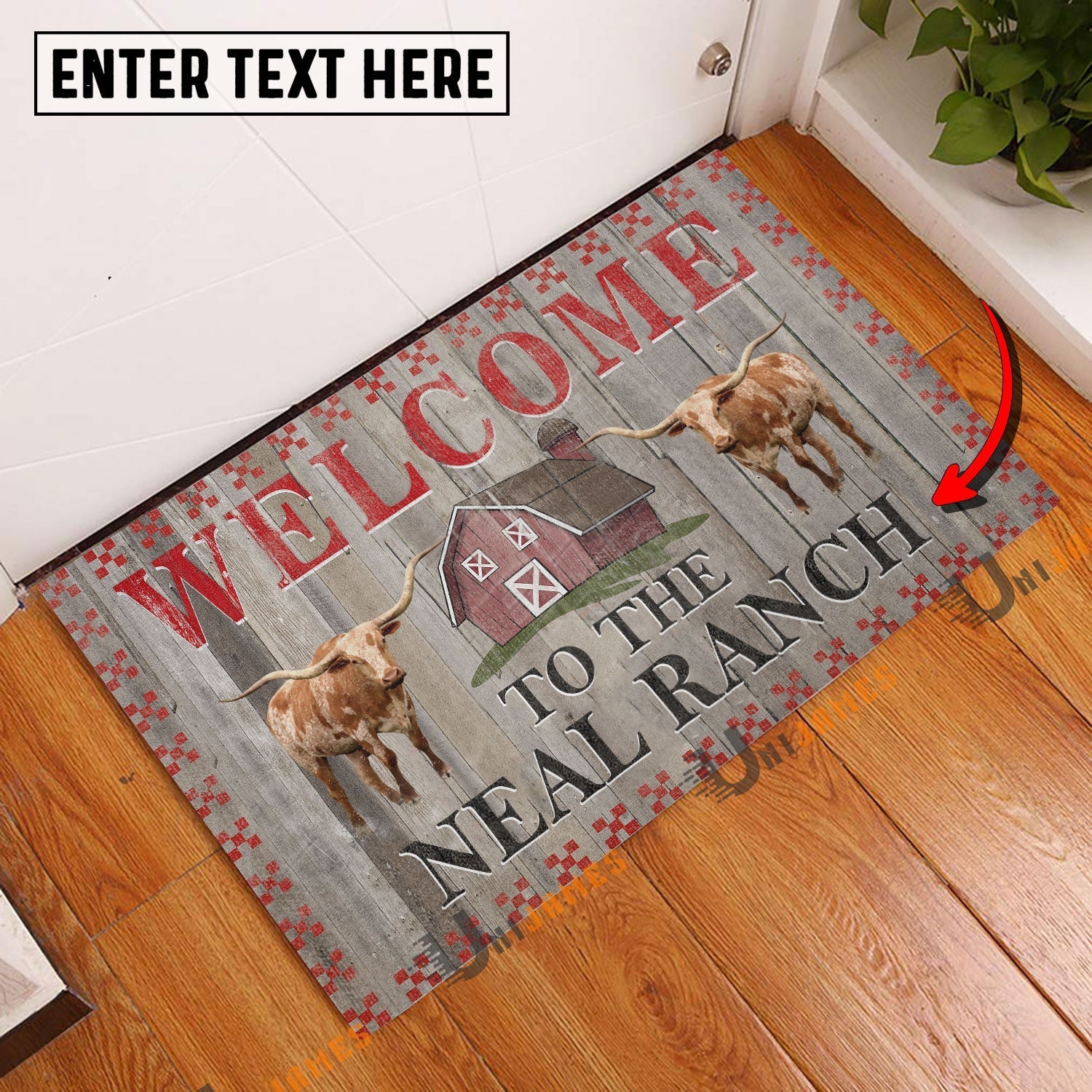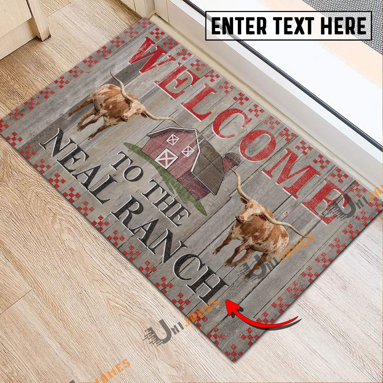 Uni Texas Longhorn Welcome To The Farmhouse Custom Name Doormat