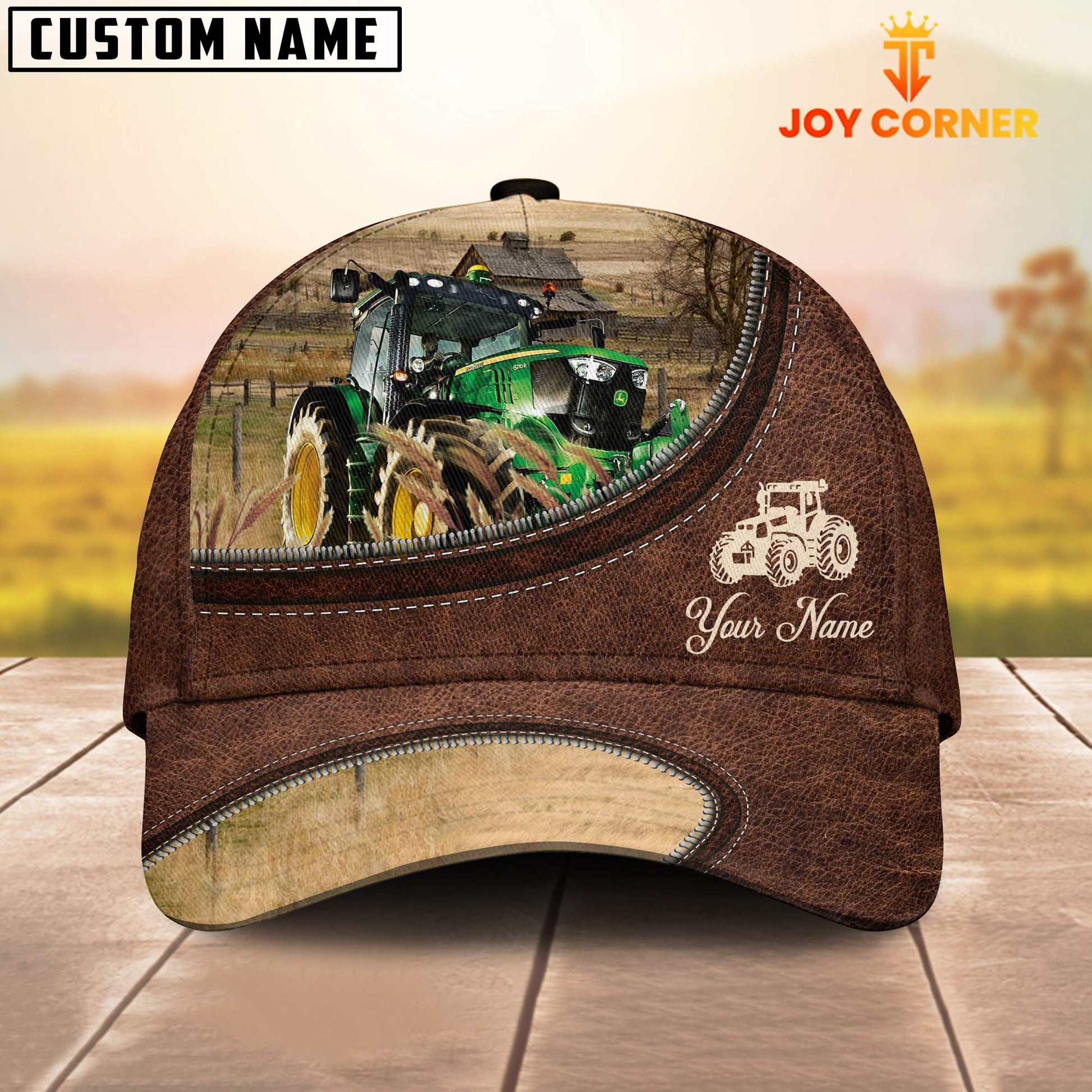 Uni Tractor On The Farm Customized Name Leather Pattern Cap