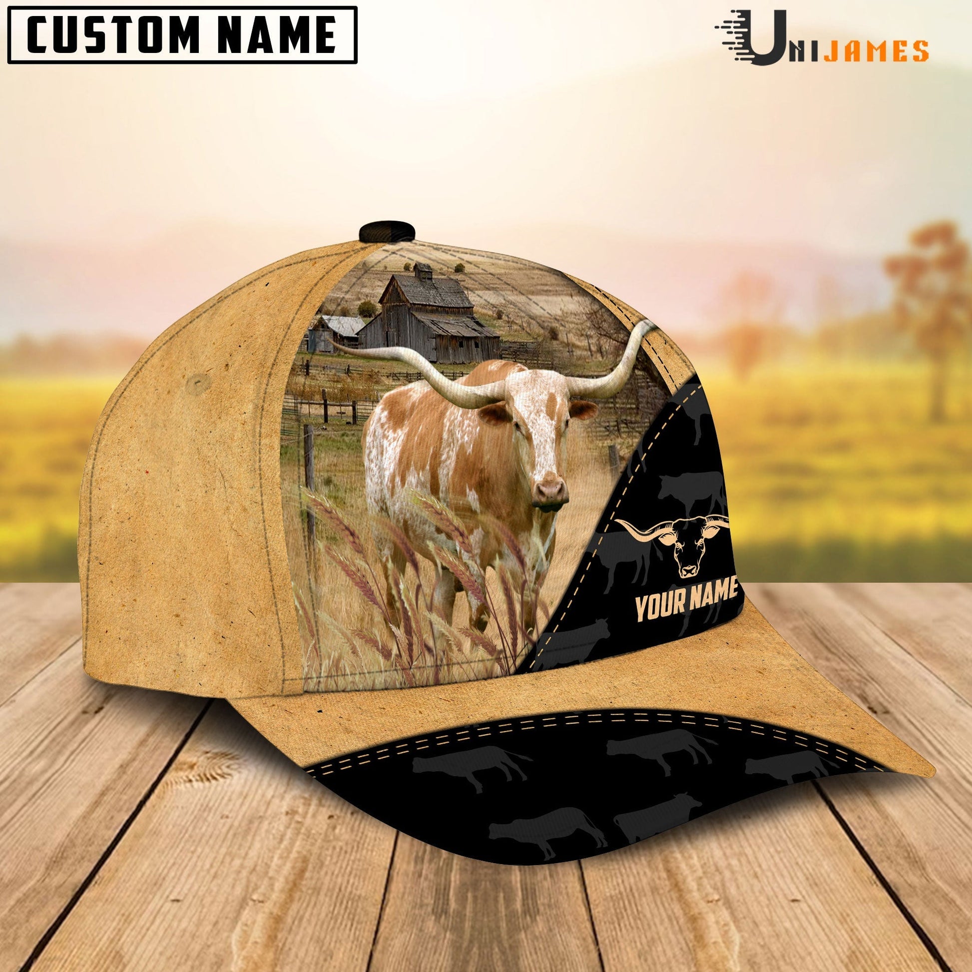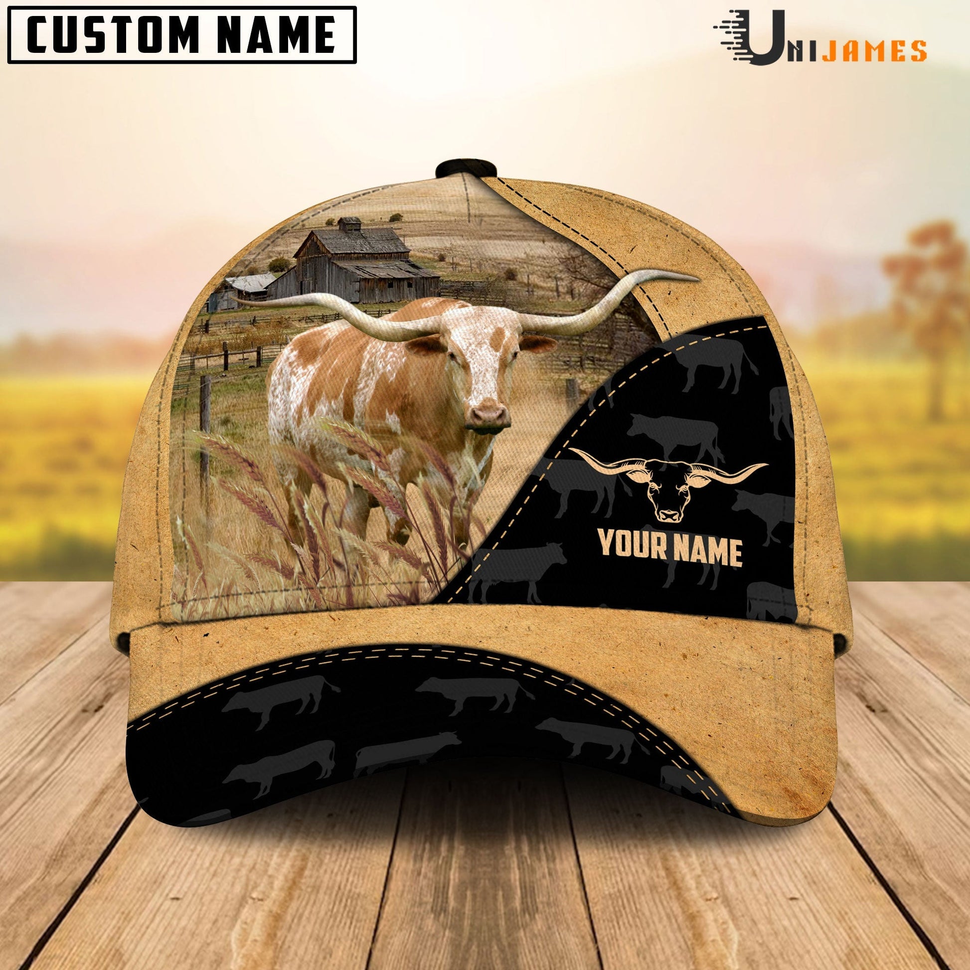 Uni TX Longhorn Cattle Black & Yellow Personalized Name Cap