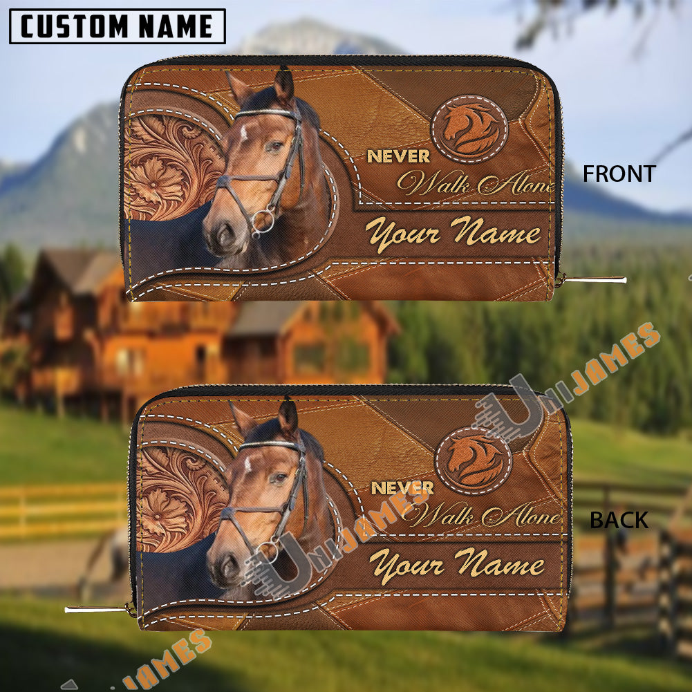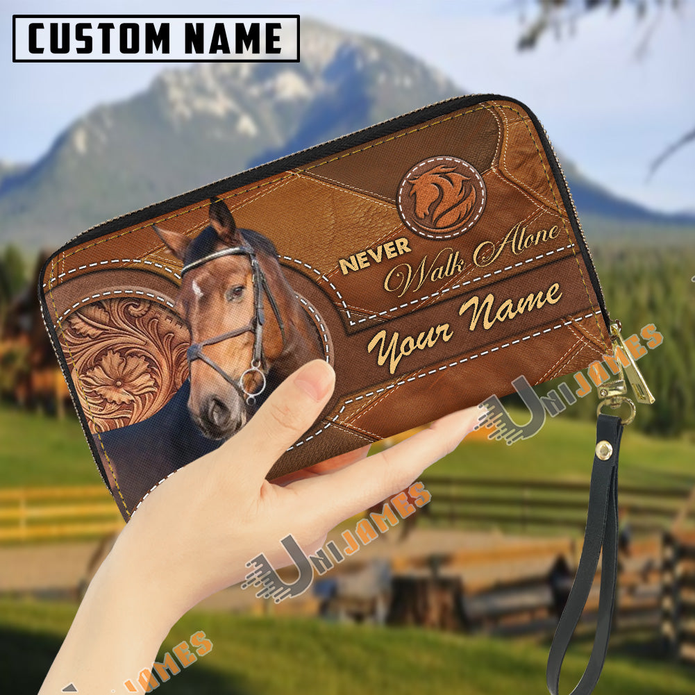 Uni Warmblood Never Walk Alone Custom Name 3D Leather Clutch