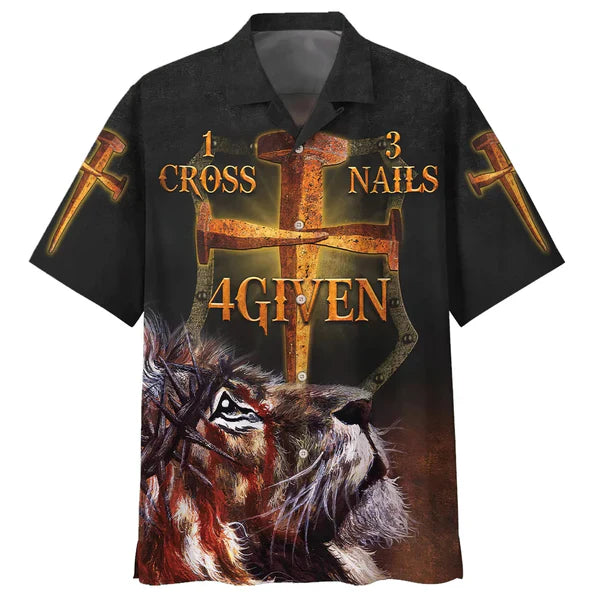 UniJames 1 Cross 3 Nails 4given Lion Hawaiian Shirts - Christian Hawaiian Shirt - Hawaiian Shirts For Men