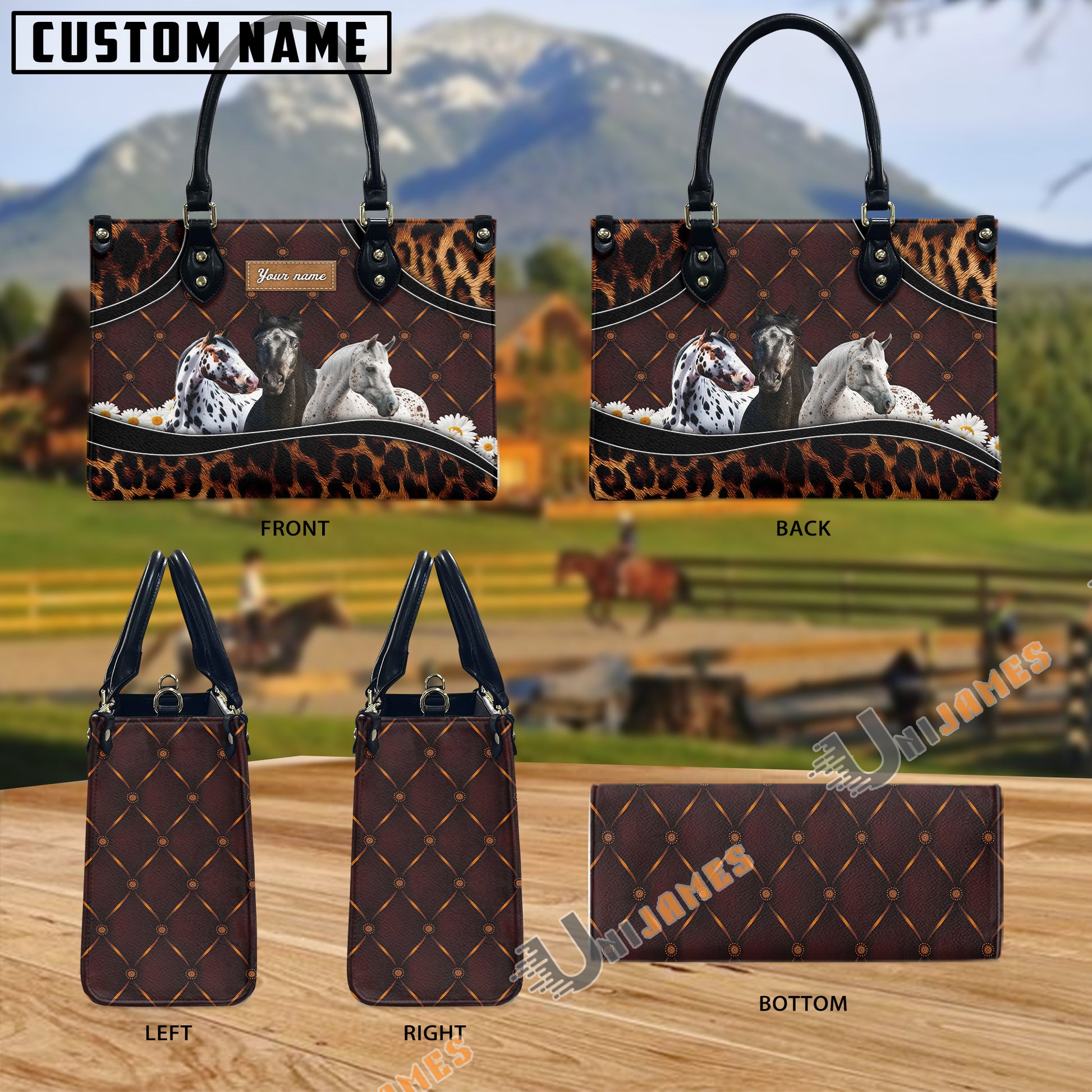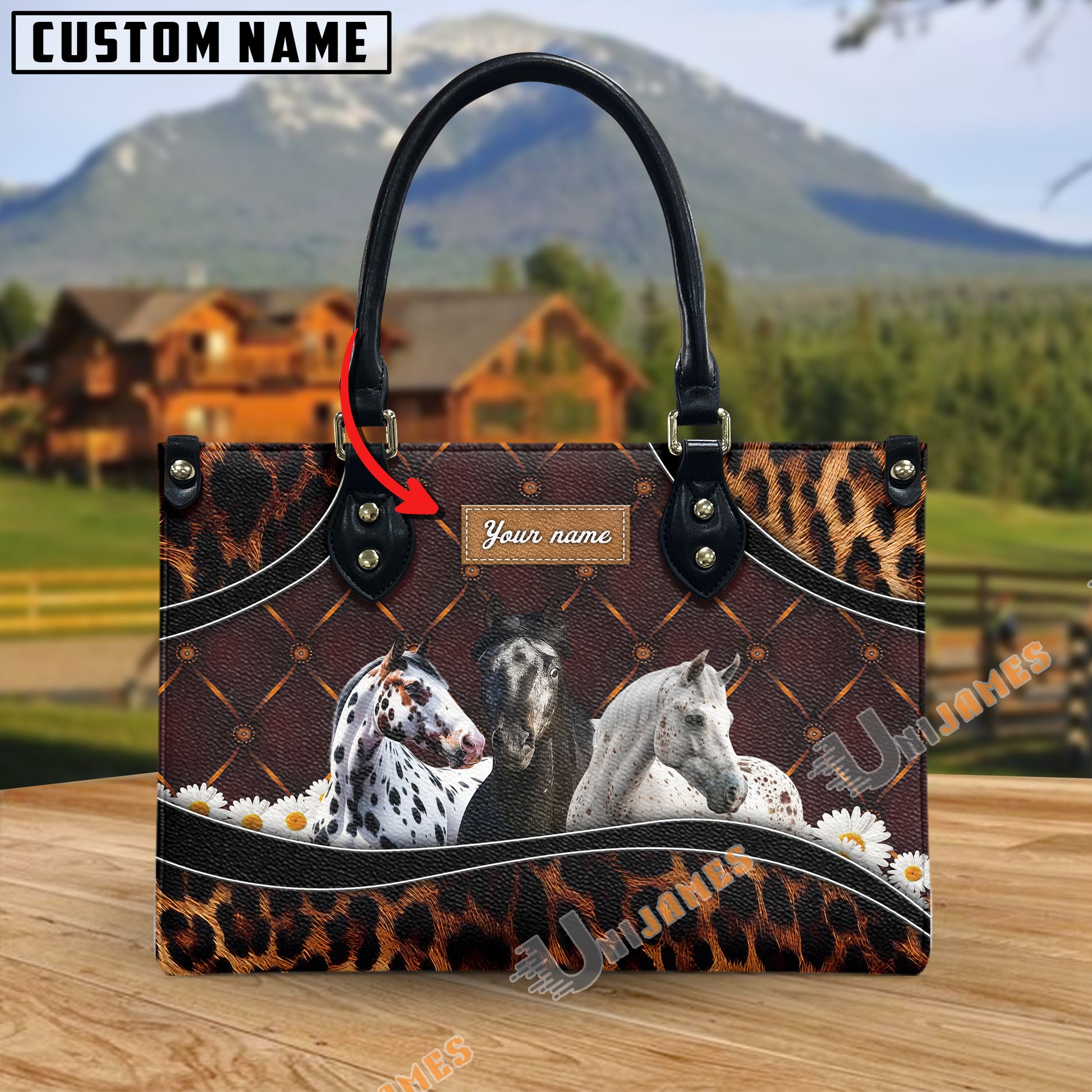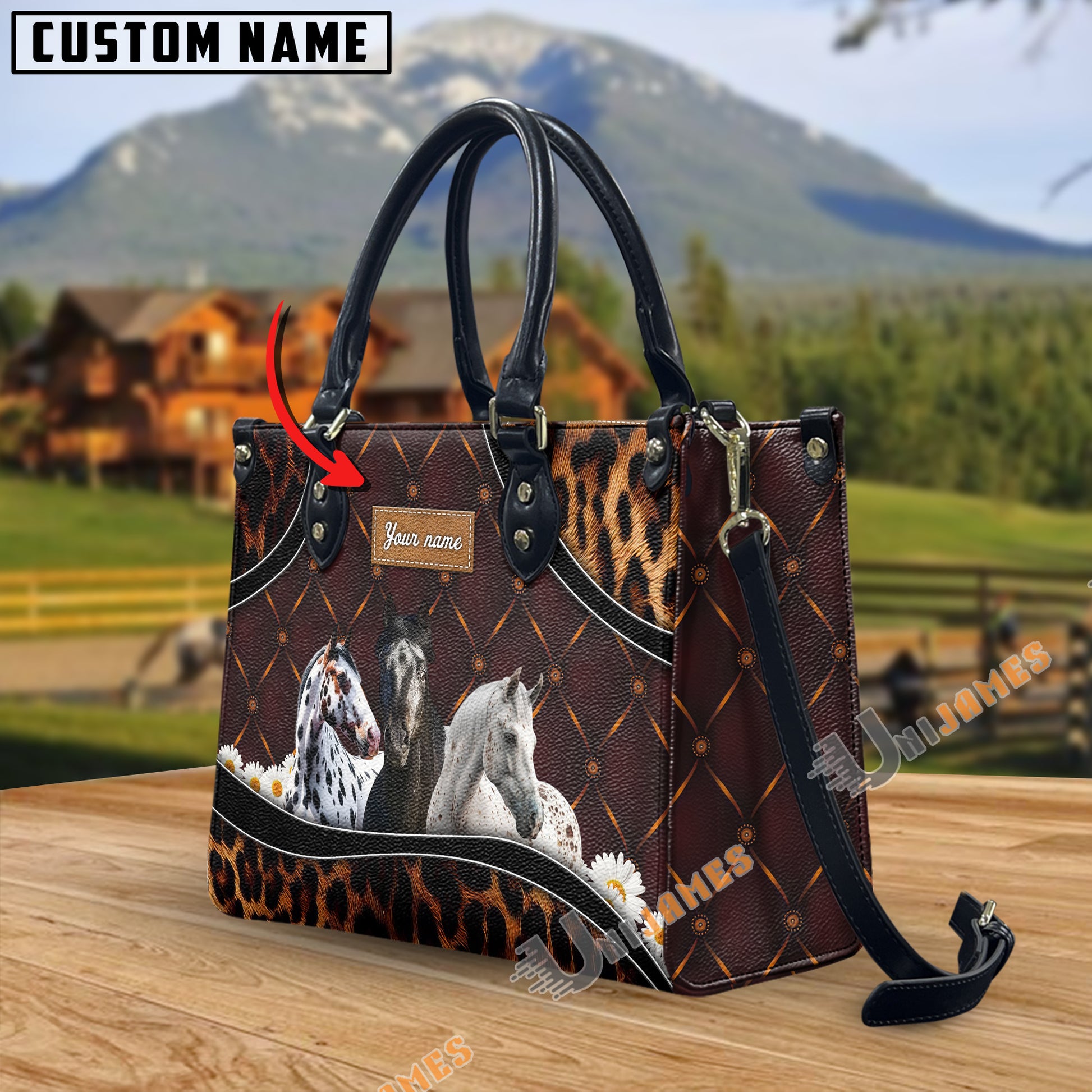 Unijames Appaloosa Happiness Sunflower Custom Name 3D Leather Handbag