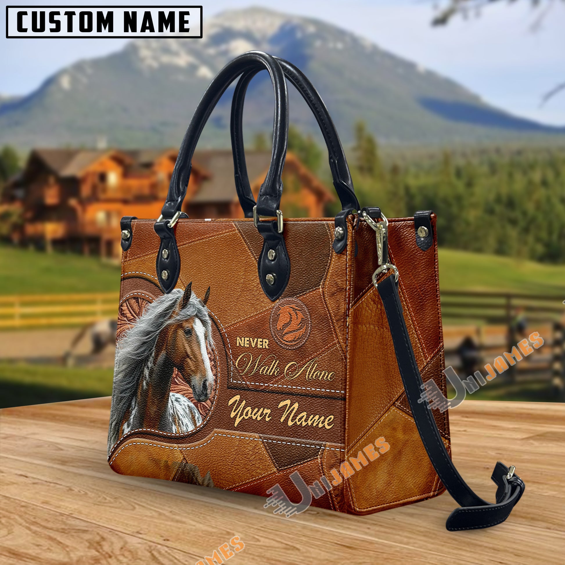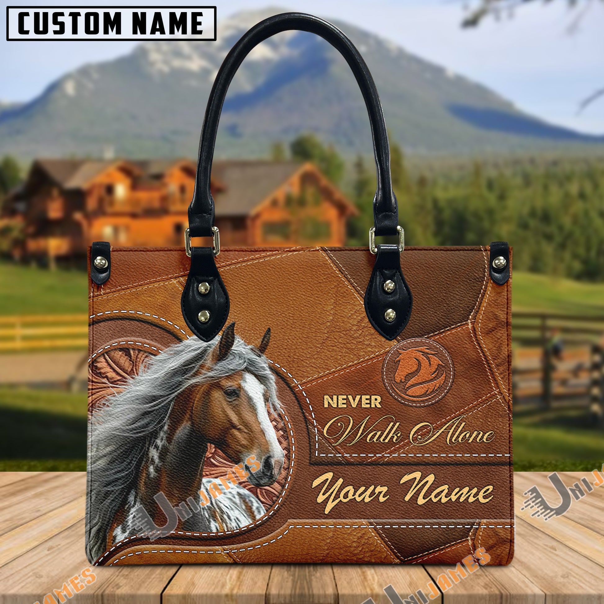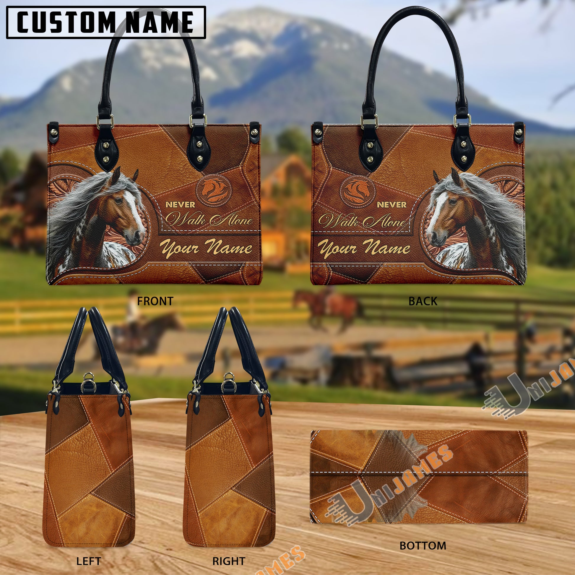 Unijames Appaloosa Never Walk Alone Custom Name 3D Leather Handbag