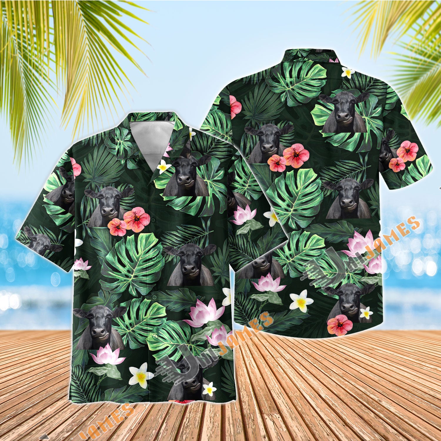UniJames Black Angus Summer Stay Cool Hawaiian Shirt