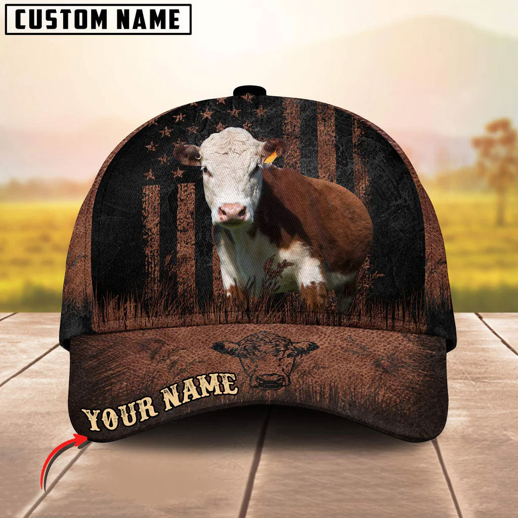 Unijames Cattle Dark Brown Flag Pattern Personalized Name Cap
