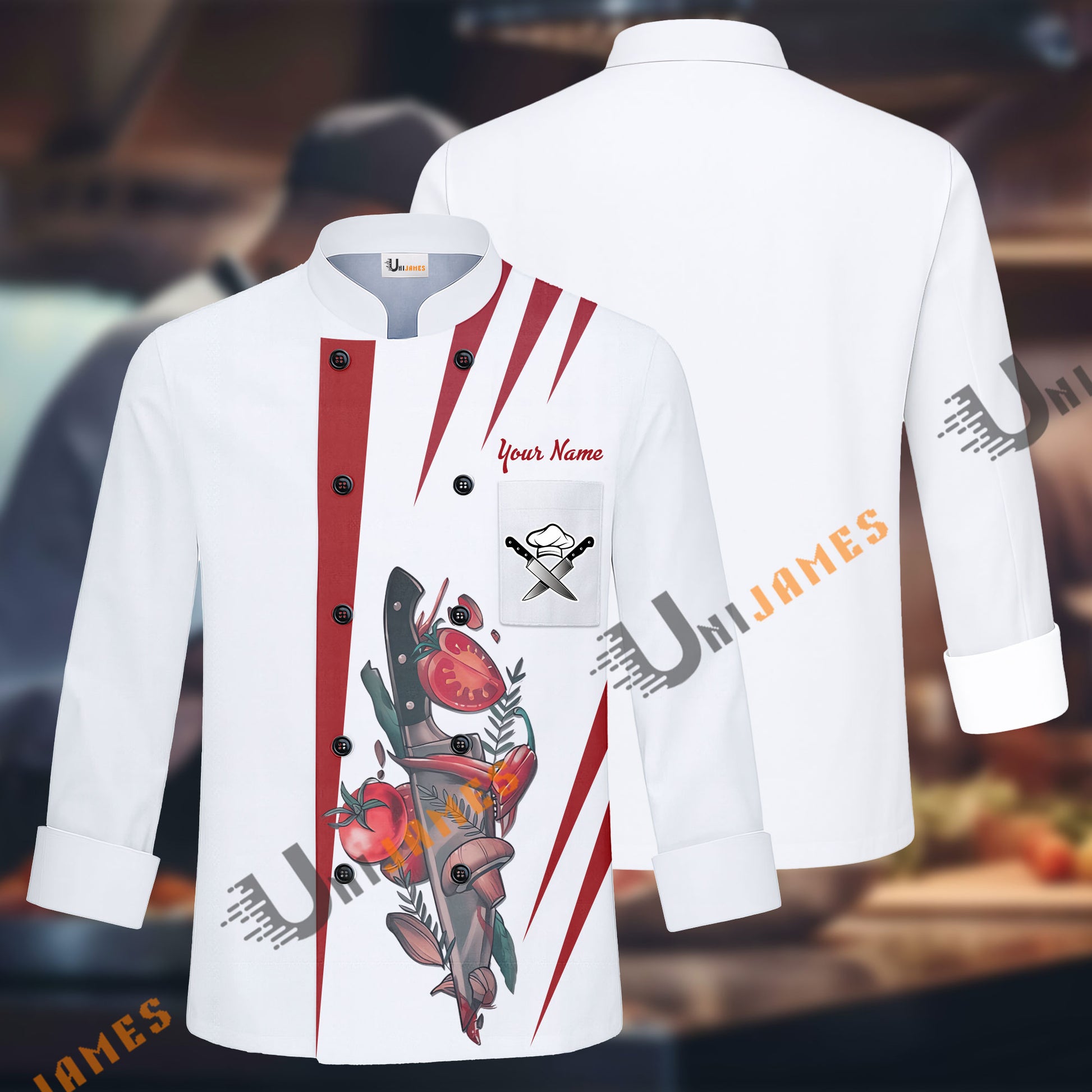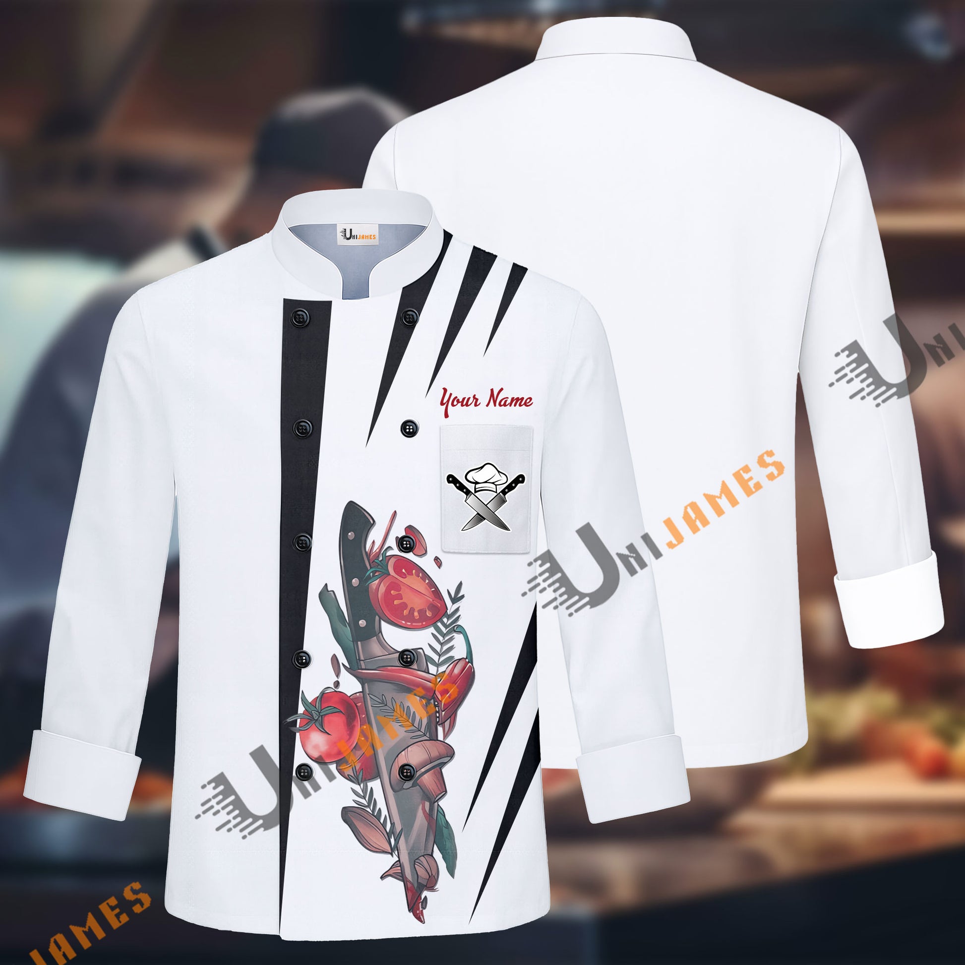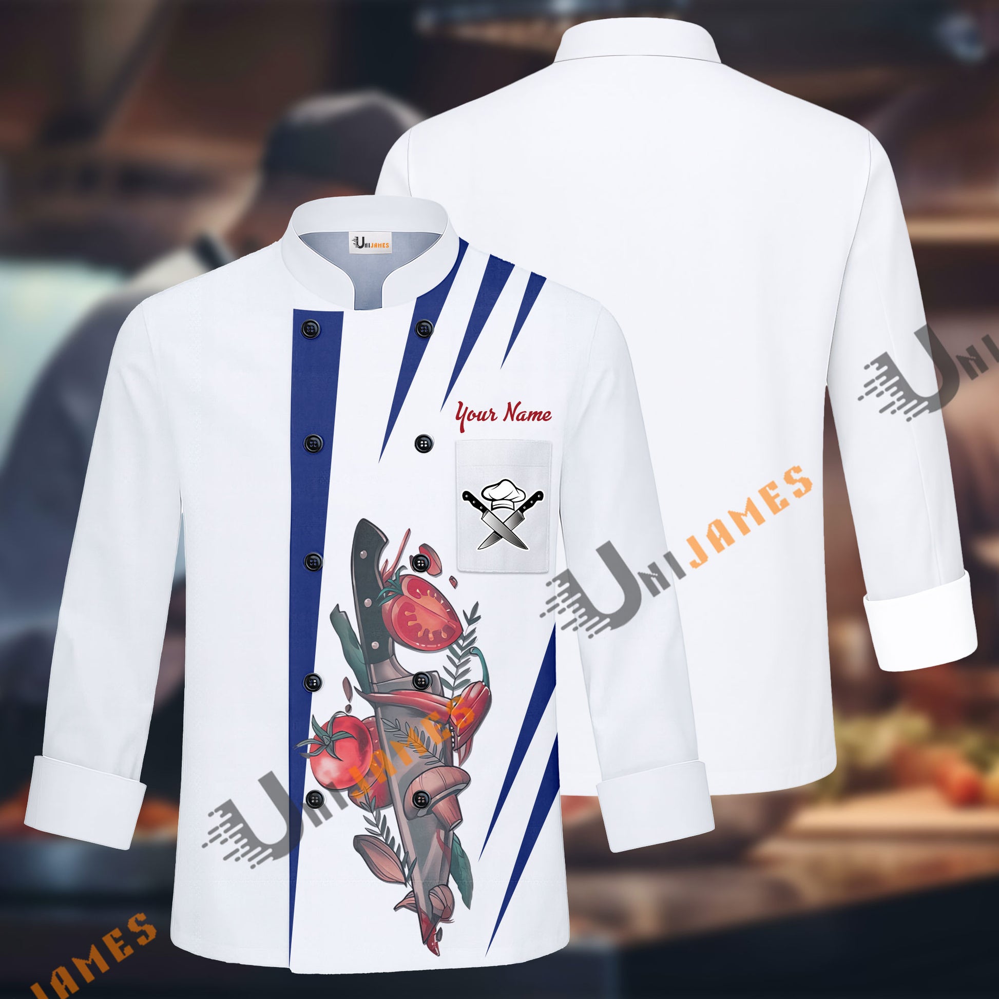 Unijames Color Spike Pattern Multicolor Option Custom Name Long Sleeve Chef Jacket (4 Colors)