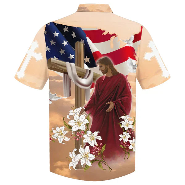 UniJames Cross With Lilies Jesus Is My Savior Hawaiian Shirt - Best Hawaiian Shirts - Christian Hawaiian Shirt