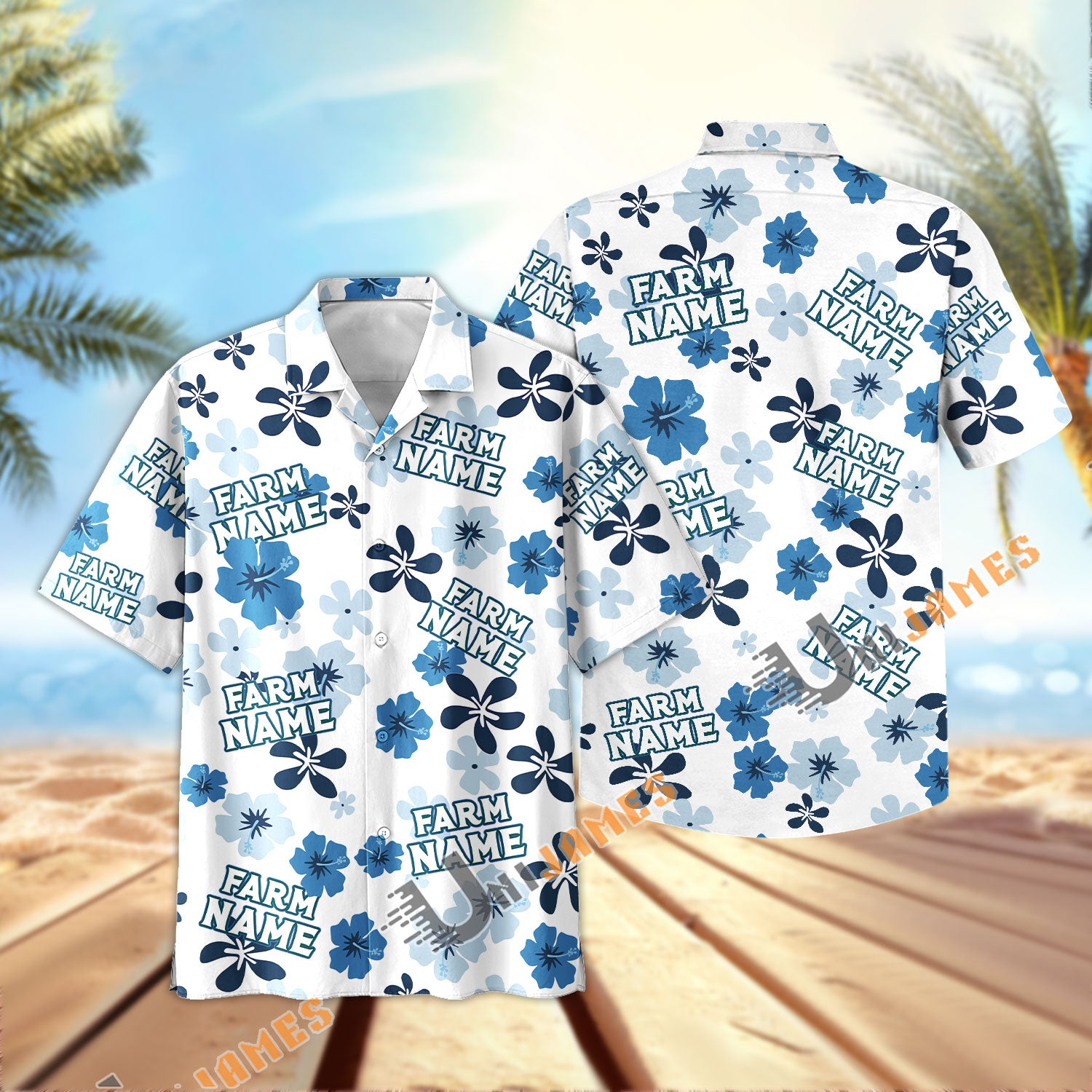 UniJames Custom Logo, Farm Name Blue Floral Pattern Hawaiian Shirt