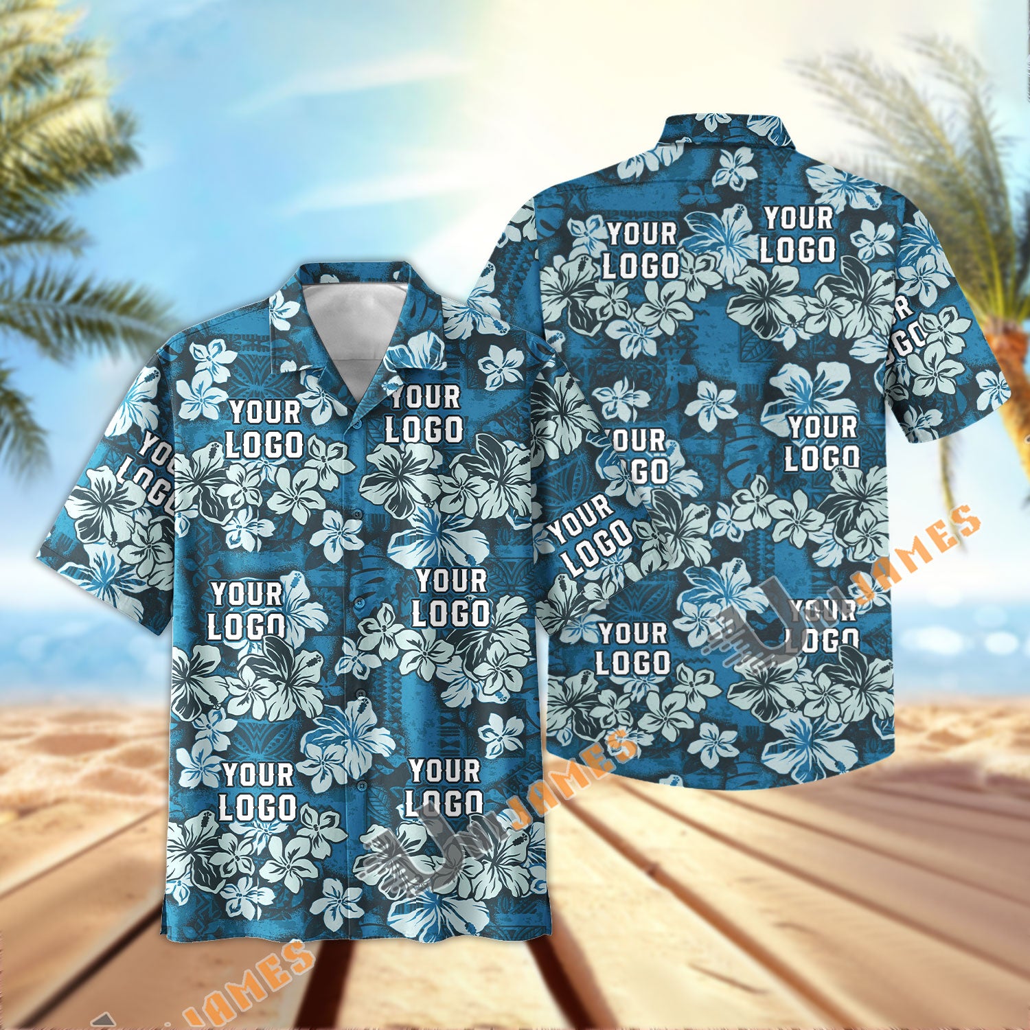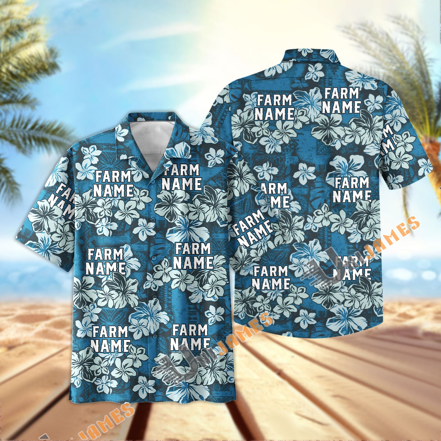 UniJames Custom Logo, Farm Name Dark Blue Flower Hawaiian Shirt