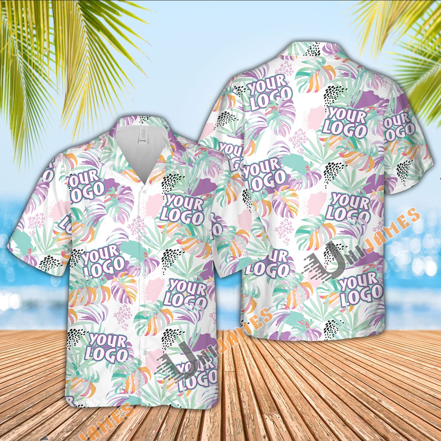 UniJames Custom Logo, Farm Name Purple Tropical Pattern Hawaiian Shirt