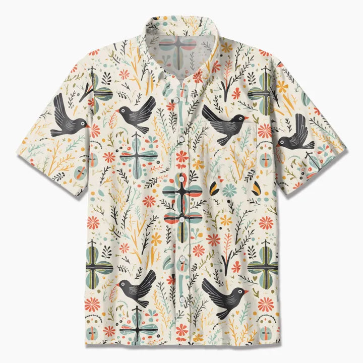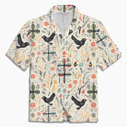 UniJames Dove Cross Boho Christian Hawaiian Shirt