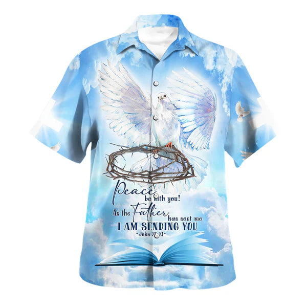 UniJames Dove Peace Be With You As The Father Hawaiian Shirt - Christian Hawaiian Shirt - Religious Hawaiian Shirts