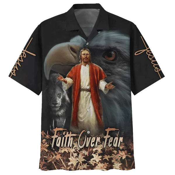 UniJames Faith Over Fear Jesus Lion Eagle Hawaiian Shirts - Christian Hawaiian Shirt - Hawaiian Shirts For Men