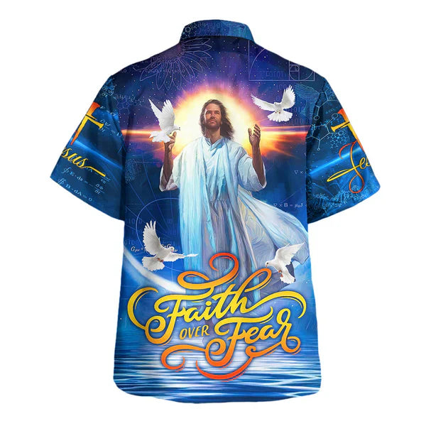 UniJames Faith Over Fear Jesus Potrait Hawaiian Shirt - Christian Hawaiian Shirt - Religious Hawaiian Shirts