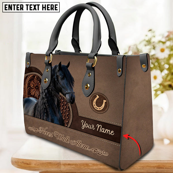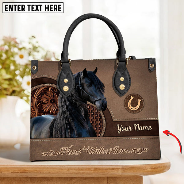 Unijames Friesian Horse Never Walk Alone Custom Name 3D Leather Handbag