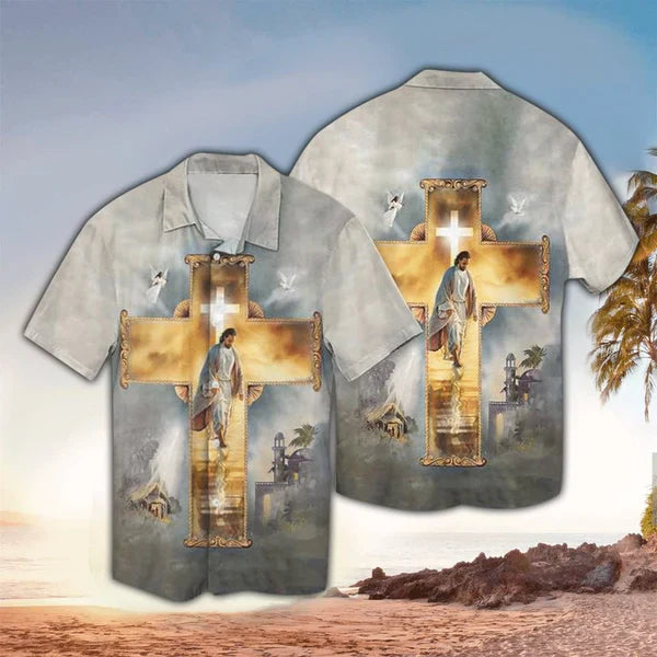 UniJames Gate Way To Heaven Jesus And Cross Hawaiian Shirt - Christian Hawaiian Shirt for Men Women