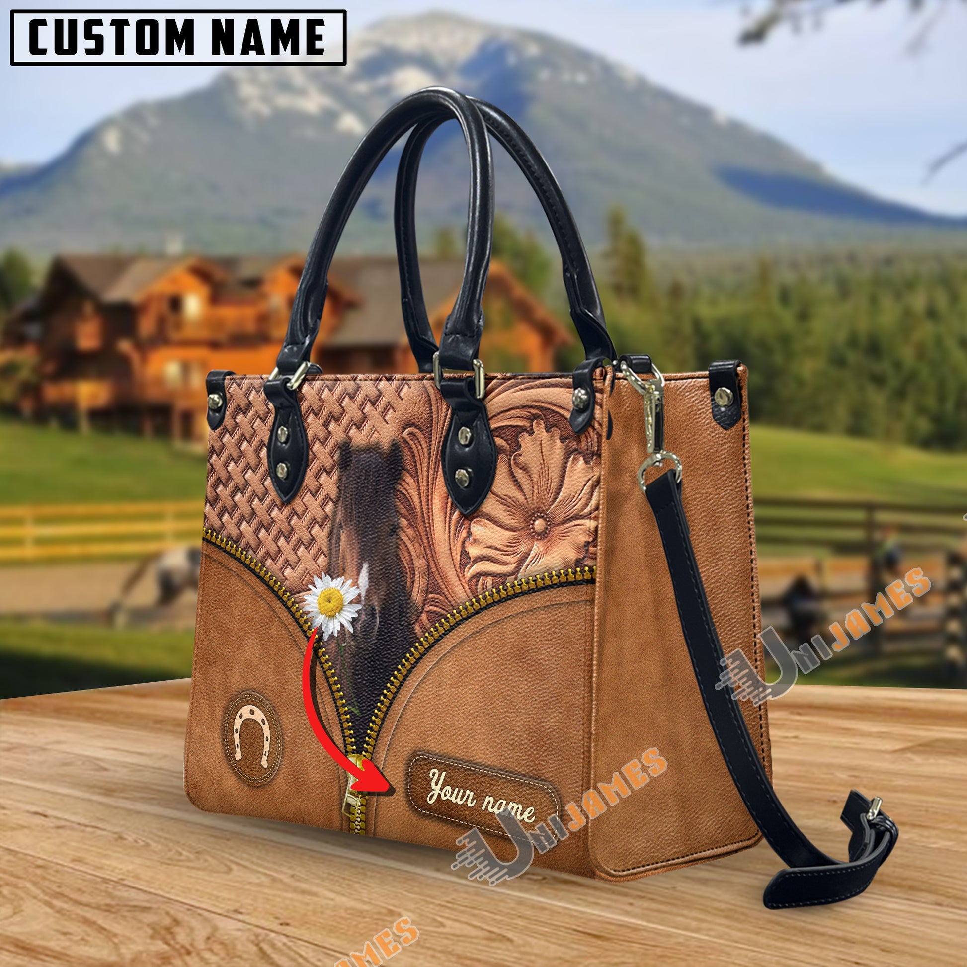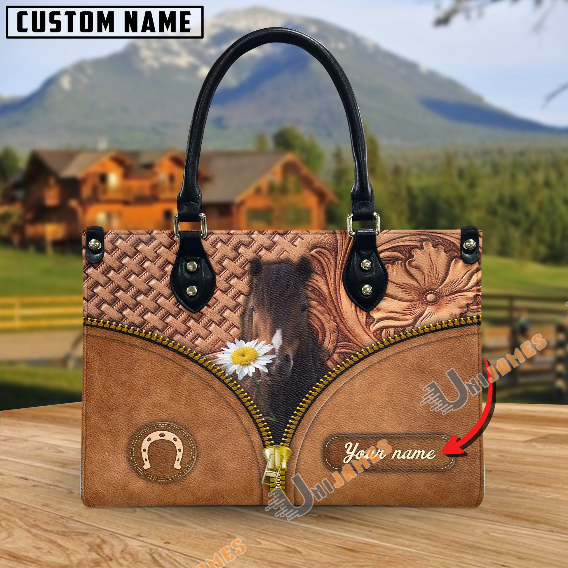 Unijames Hackney Center Zip Pattern Custom Name 3D Leather Handbag