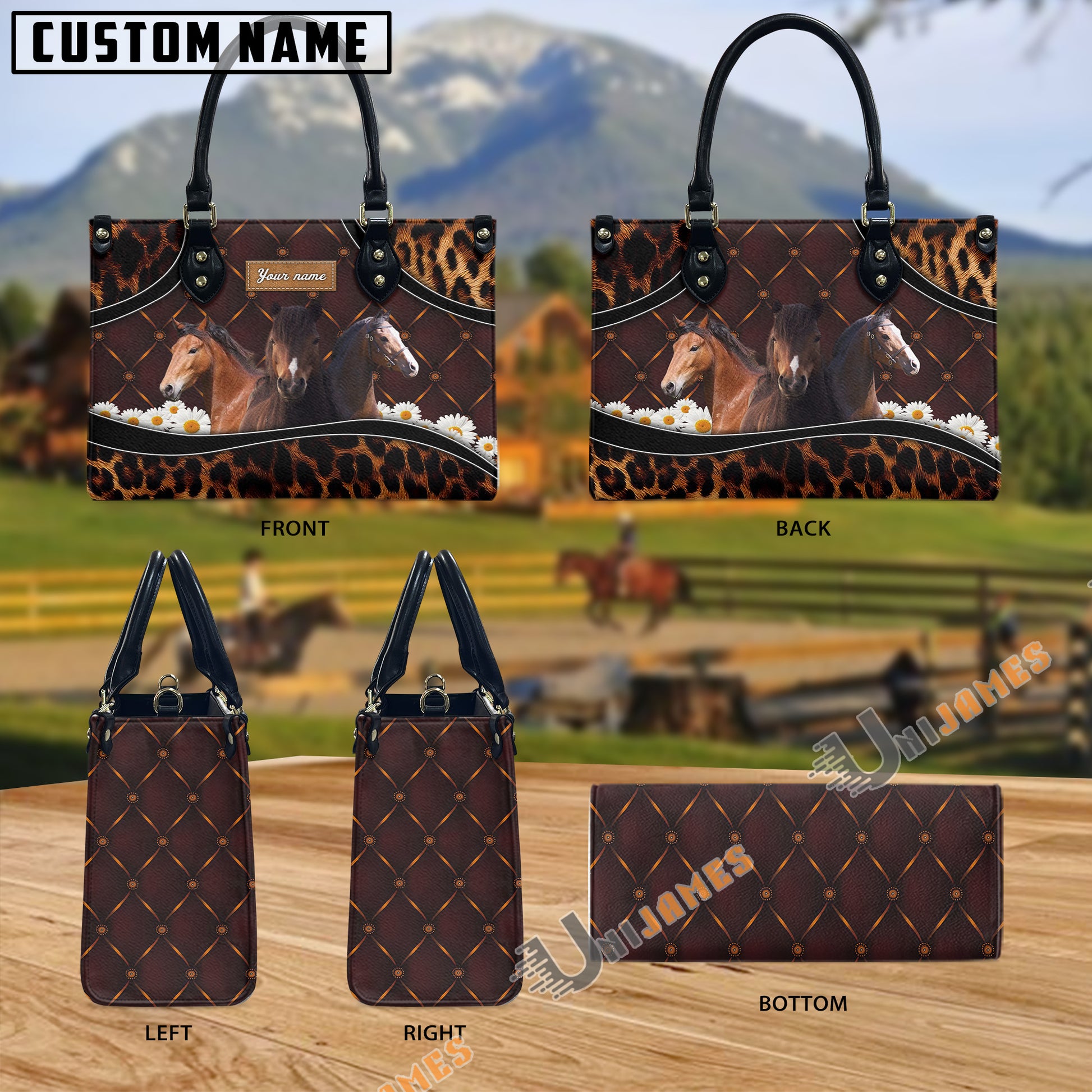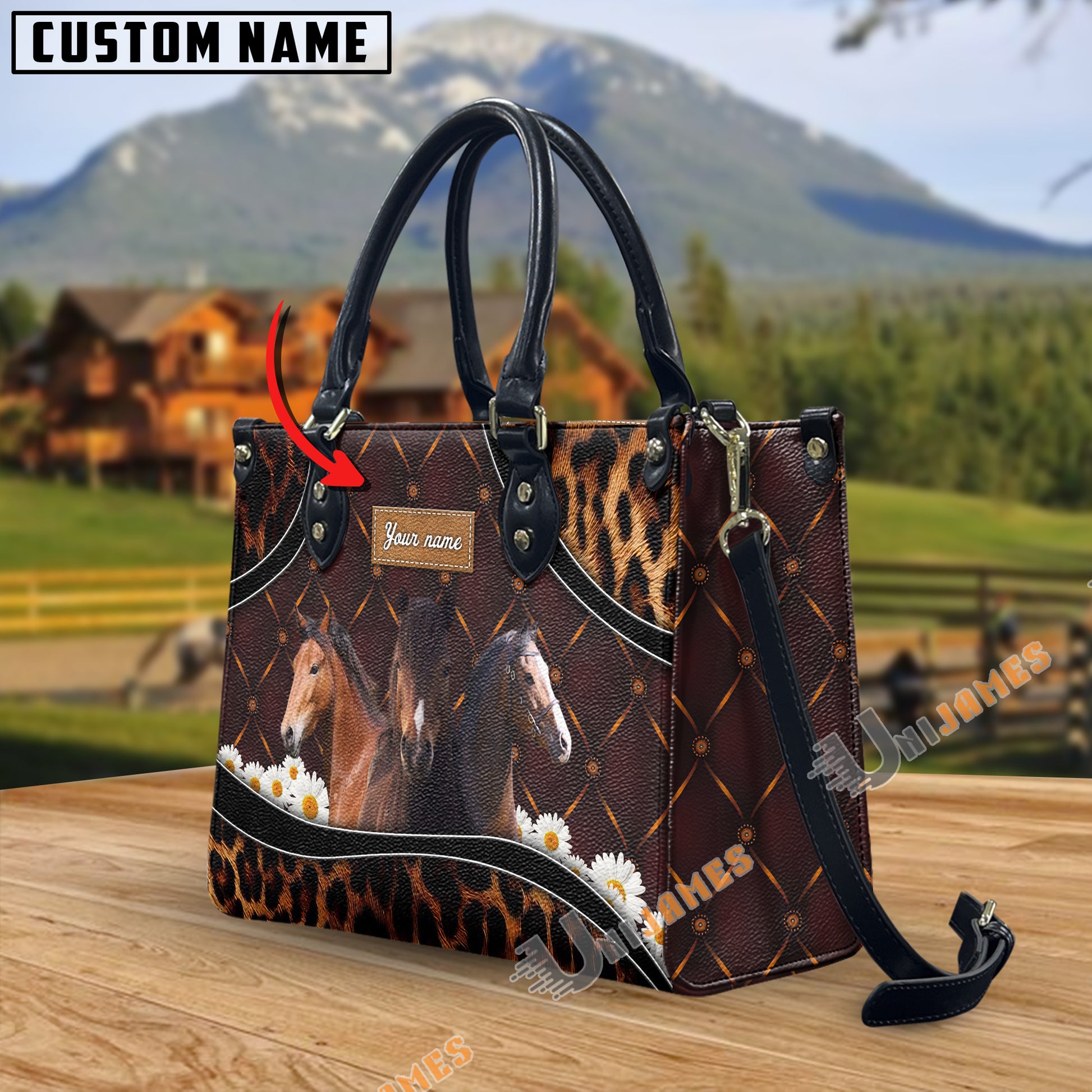 Unijames Hackney Happiness Sunflower Custom Name 3D Leather Handbag
