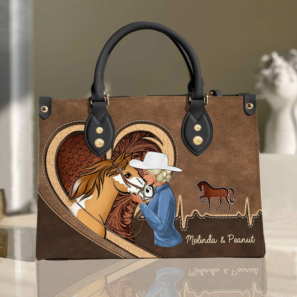 Unijames Horse Lovers Carving Leather Pattern Custom Name 3D Leather Handbag