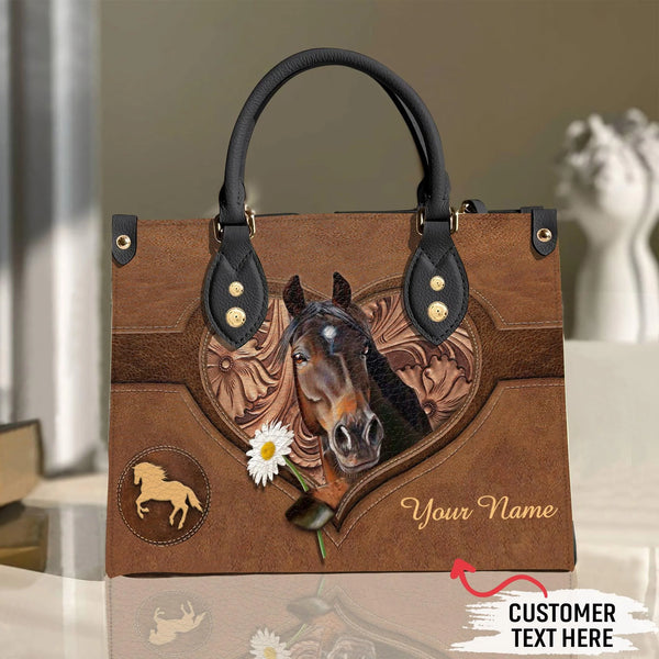 Unijames Horse Lovers Carving Leather Pattern Custom Name 3D Leather Handbag