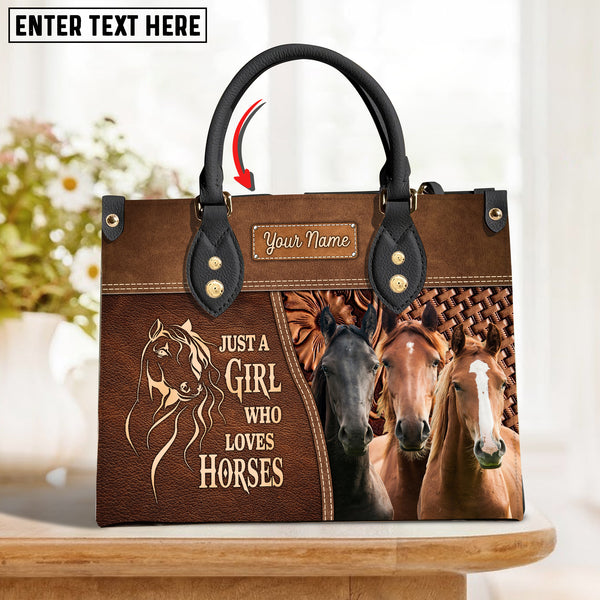 Unijames Horse Lovers Just A Girl Who Loves Horses Custom Name 3D Leather Handbag