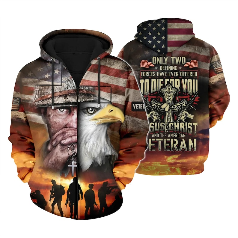 Unijames Jesus Christ And The American Veteran 3D All-Over Print Hoodies