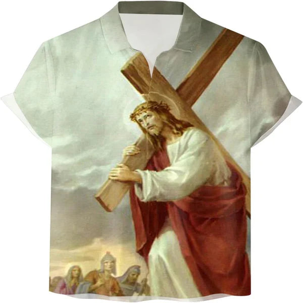 UniJames Jesus Christ Carrying The Cross Christian Hawaiian Shirt - Hawaiian Beach Shirts for Men Women
