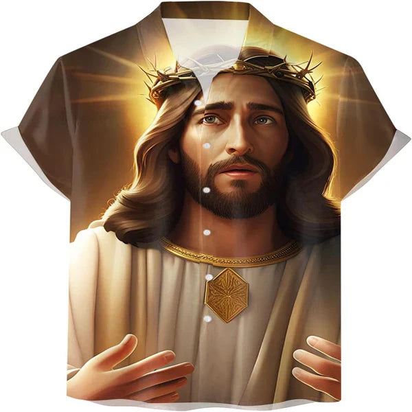 UniJames Jesus Crown Of Thorns Christian Hawaiian Shirt - Hawaiian Beach Shirts for Men Women