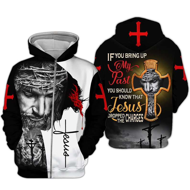 This powerful Christian hoodie features a striking image of Jesus crowned with thorns and a bold message: “If you bring up my past, you should know that Jesus dropped the charges.” Designed for believers who walk in grace, it’s a meaningful reminder of forgiveness, redemption, and God’s unconditional love.