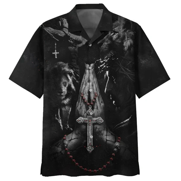 UniJames Jesus Hands Praying Lion Hawaiian Shirts - Christian Hawaiian Shirt - Hawaiian Shirts For Men