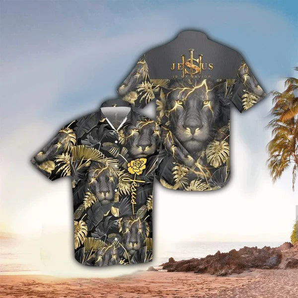 UniJames Jesus Is My Savior Three Nails Black Lion Hawaiian Shirt - Christian Hawaiian Shirt for Men Women