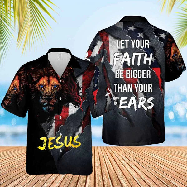 UniJames Jesus Lion Let's Your Faith Be Bigger Than Your Fears Hawaiian Shirt - Christian Hawaiian Shirts For Women Men