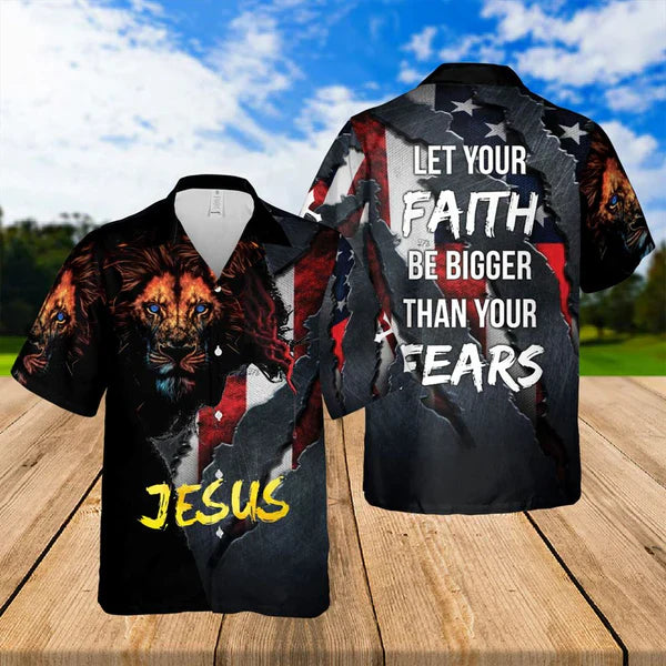 UniJames Jesus Lion Let's Your Faith Be Bigger Than Your Fears Hawaiian Shirts - Religious Hawaiian Shirts - Hawaiian Christian For Men Women