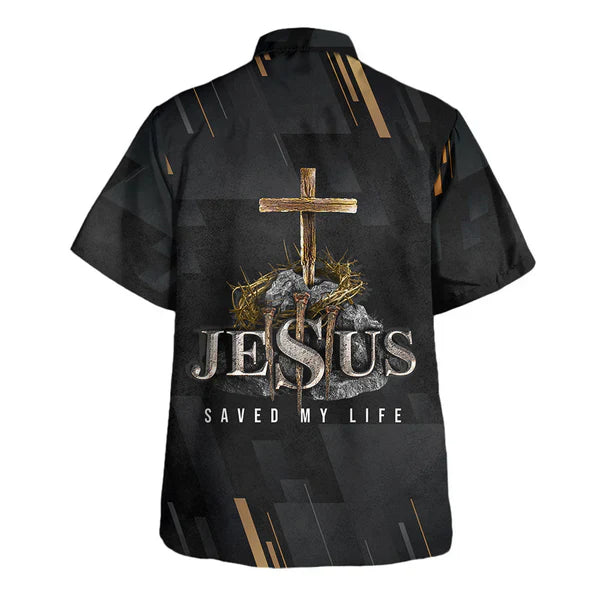 UniJames Jesus Saved My Life Cross Hawaiian Shirt - Christian Hawaiian Shirt - Religious Hawaiian Shirts