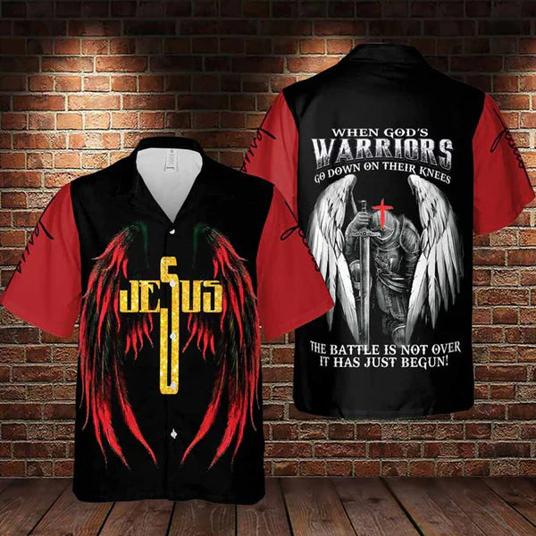 UniJames Jesus Warrior Angel Wings Hawaiian Shirt - Christian Hawaiian Shirts For Women Men
