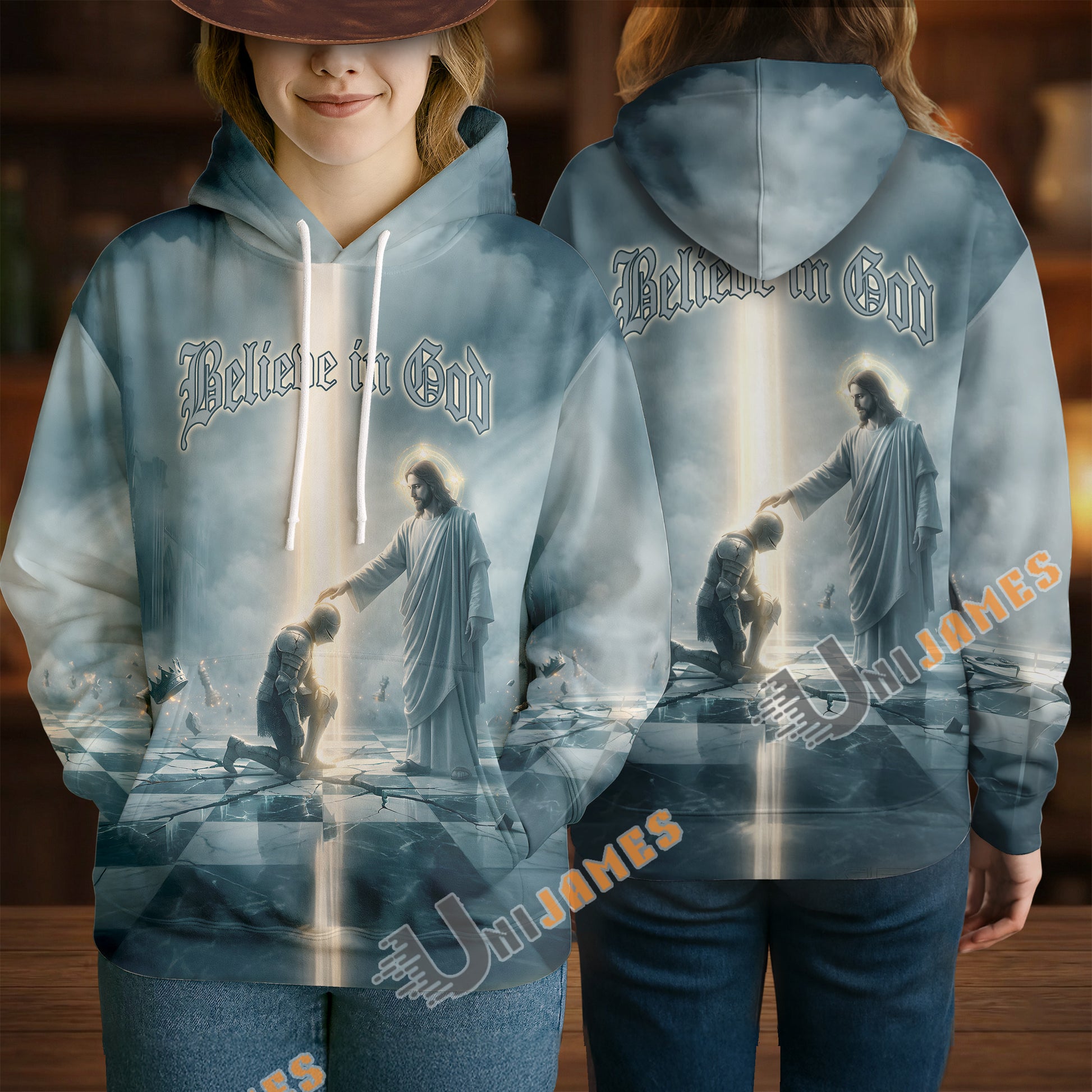 Unijames Kneeling Warrior Before Jesus 3D All-Over Print Hoodie