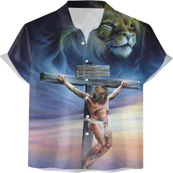 UniJames Lion Crucifixion Of Jesus Christian Hawaiian Shirt - Hawaiian Beach Shirts for Men Women