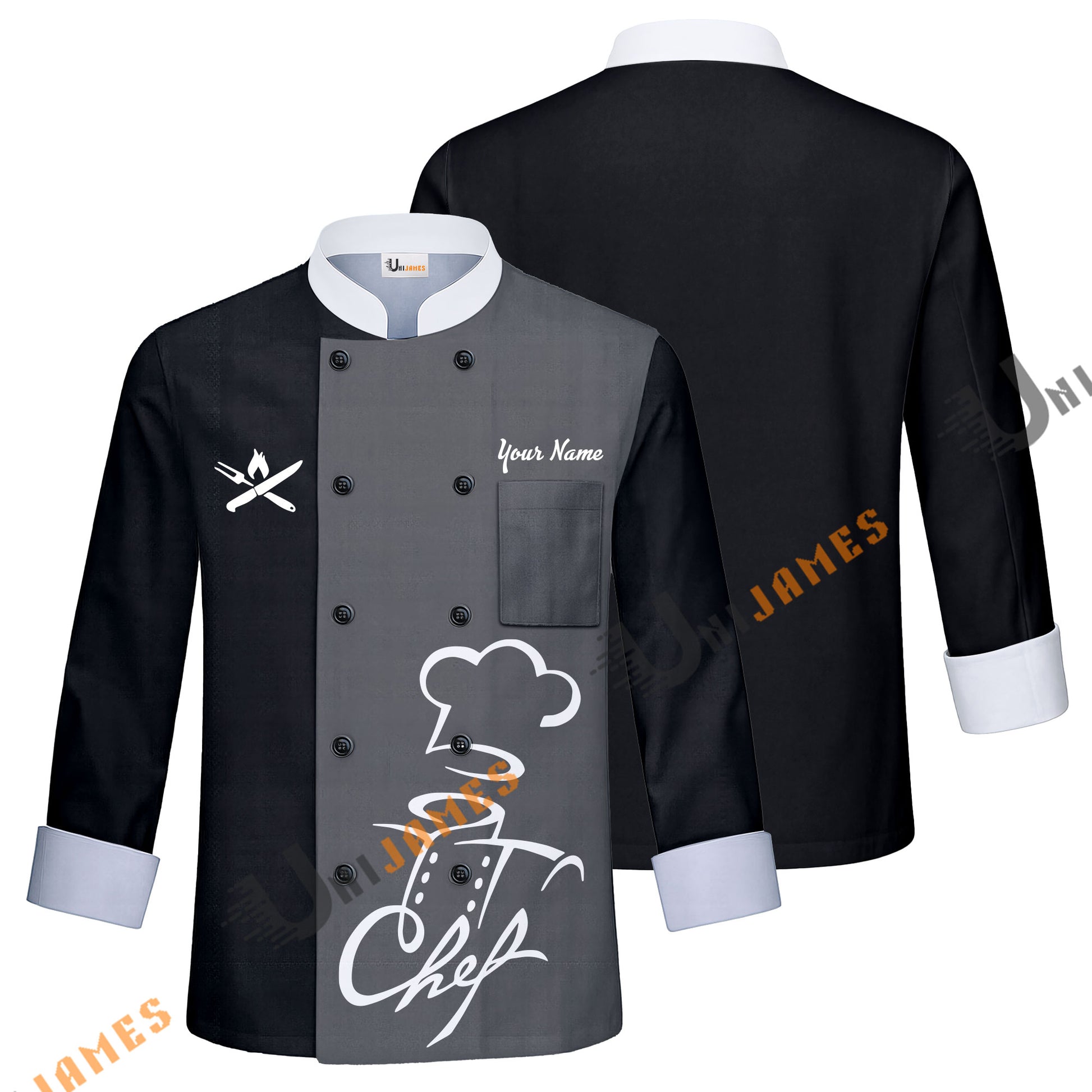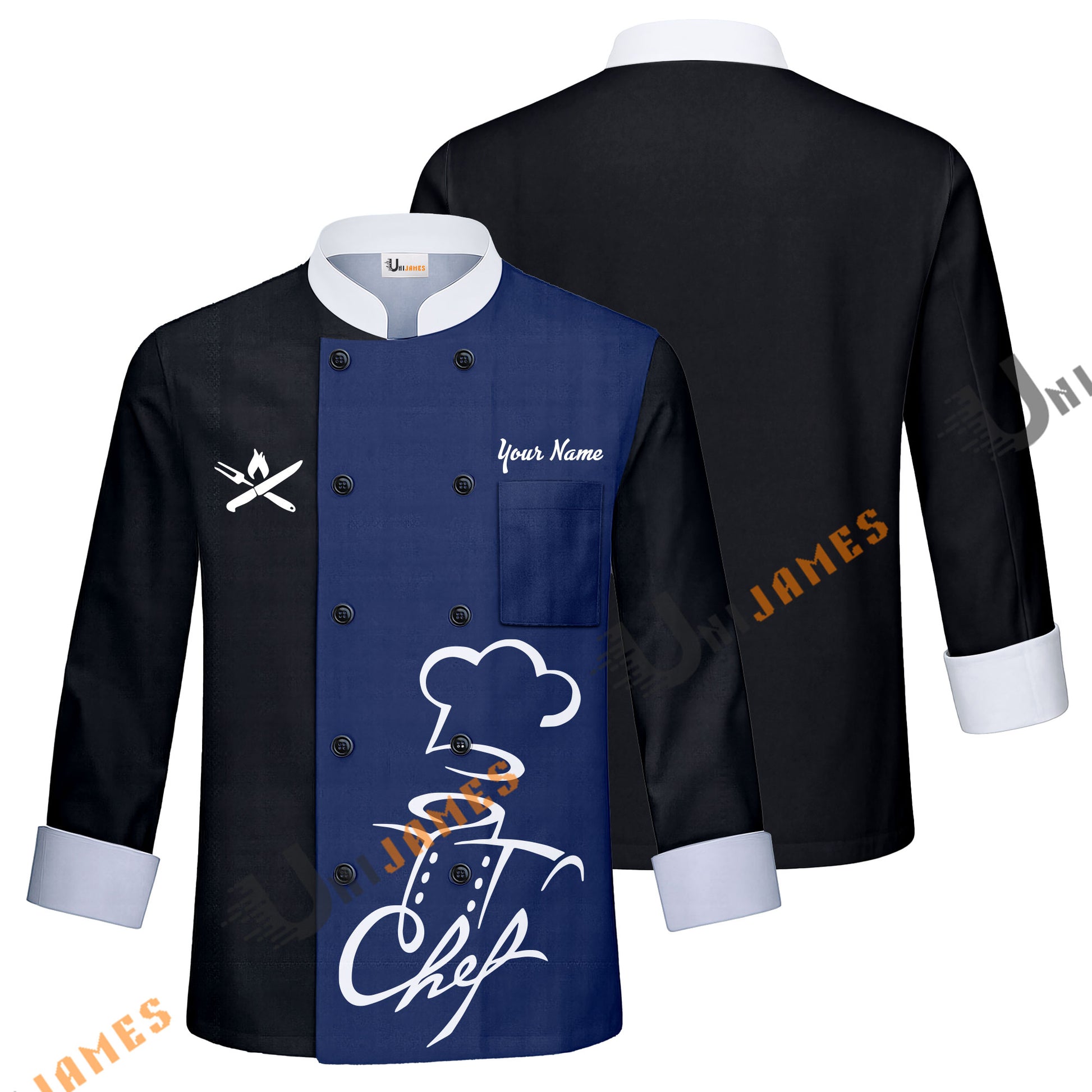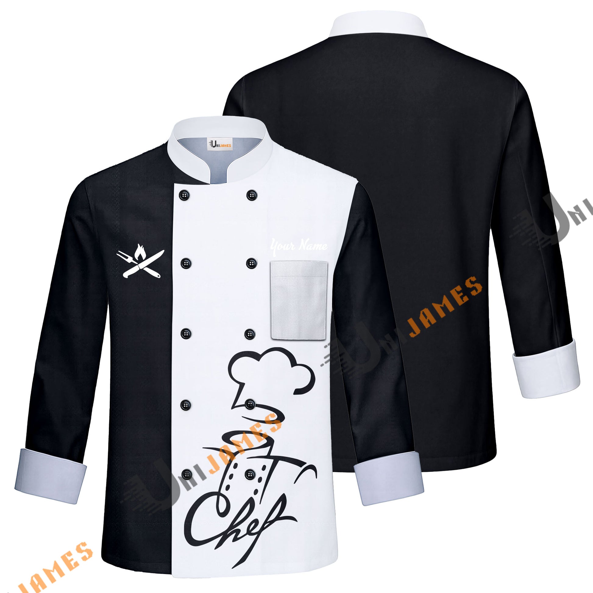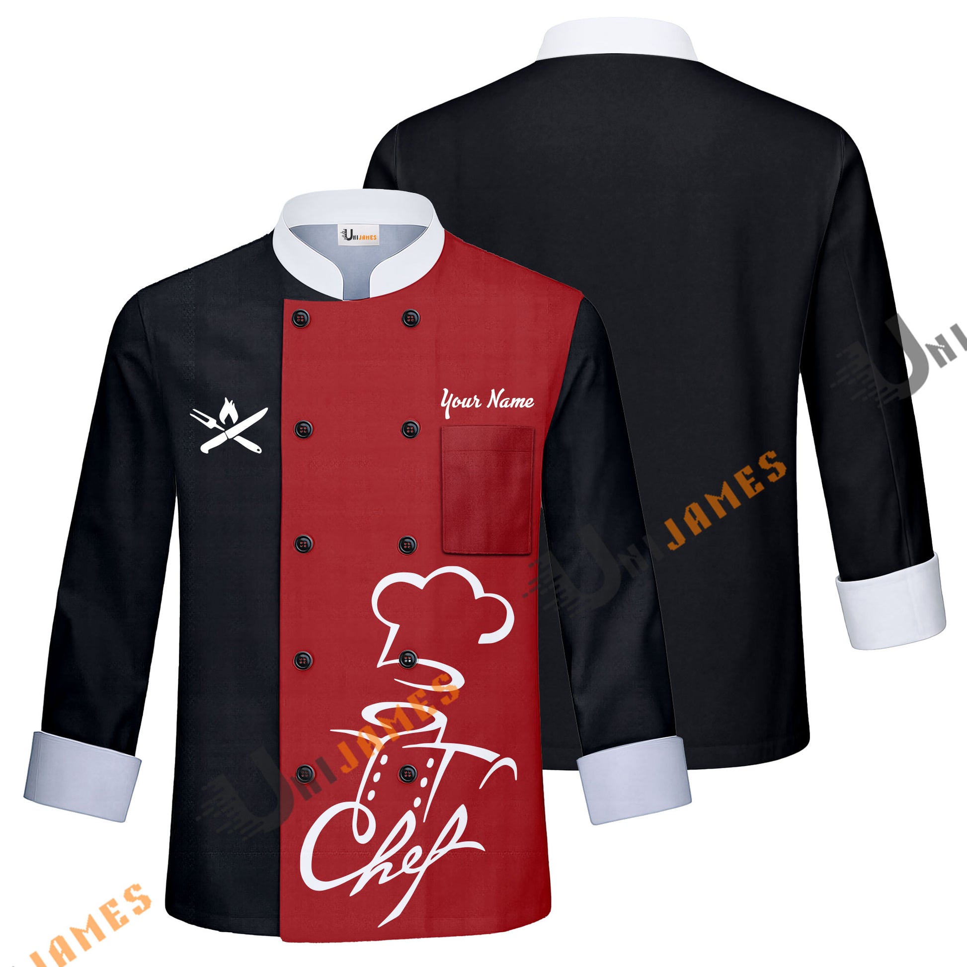Unijames Love Chef Multicolor Option Custom Name Long Sleeve Chef Jacket (4 Colors)