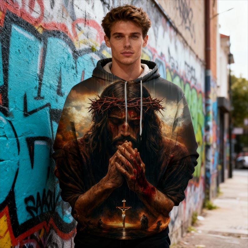 This breathtaking hoodie captures one of the most powerful moments in Christian imagery — a depiction of deep sacrifice, unwavering love, and profound devotion. Designed for believers who want their faith to be seen, felt, and carried with them, this piece transforms a historic moment into a stunning modern artwork.