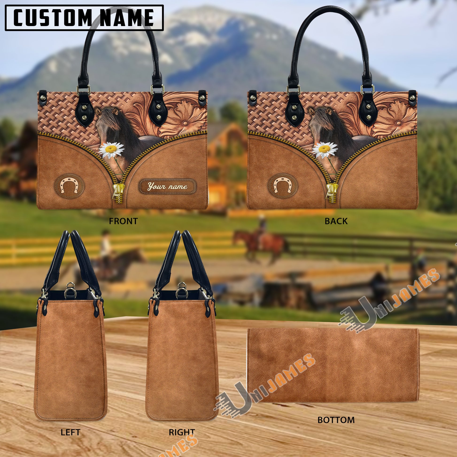 Unijames Morgan Center Zip Pattern Custom Name 3D Leather Handbag